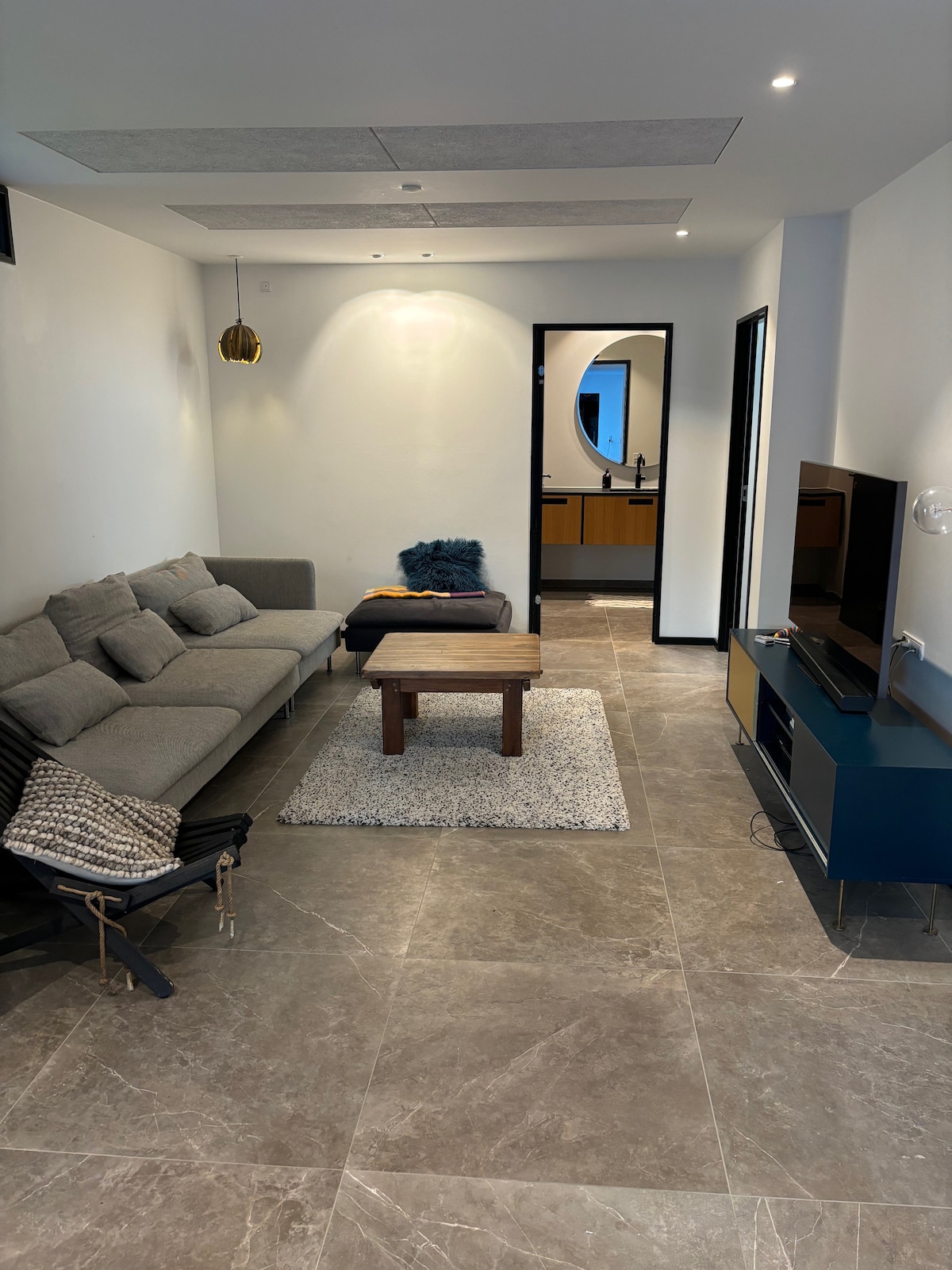 Ljúffeng, björt, notaleg 2ja herbergja íbúð í nýbyggðri villu með sérinngangi í rólegu íbúðarhverfi. Ókeypis bílastæði við dyrnar. Aðgangur að eigin afskekktri verönd fyrir utan útidyrnar. Baðherbergi með sturtu með „regnvatnssturtu“ og handsturtu. Í svefnherberginu eru 2 einbreið rúm sem hægt er að setja saman í stórt hjónarúm. Stofa/borðstofa með vel búnu eldhúsi með ísskáp/frystiskáp, örbylgjuofni og helluborði Sófi og borðstofa/vinnuborð. Auðveld innritun með lyklaboxi.
