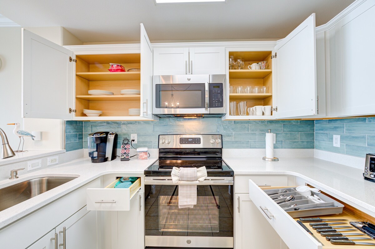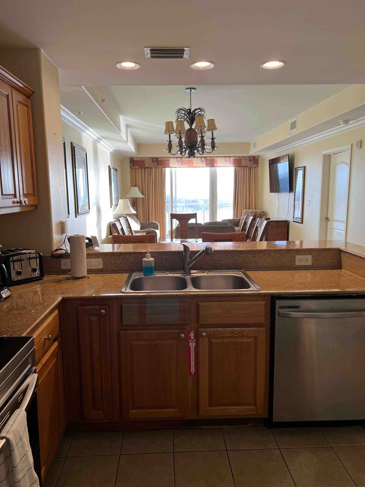 Þakíbúð á efstu hæð (21.) með king-rúmi/ 2 fullbúnum baðherbergjum, fullbúnu eldhúsi og þvottavél/þurrkara. Svefnpláss fyrir 6. Mínútur í Disney & Universal. Penthouse er með mjög stórar einkasvalir með stórfenglegu útsýni yfir STÖÐUVATN. Flísagólf með viðarútliti og sérsniðinn rafmagnsarinn með 65"snjallsjónvarpi. Uppfært eldhús með granít- og SS-tækjum. Þvottavél og þurrkari í fullri stærð. Twin bunkbeds in hallway cove (top bunk has own tv) & super comfy memory foam pullout-sofa in living room. Aðgangur að öllum þægindum dvalarstaðarins.