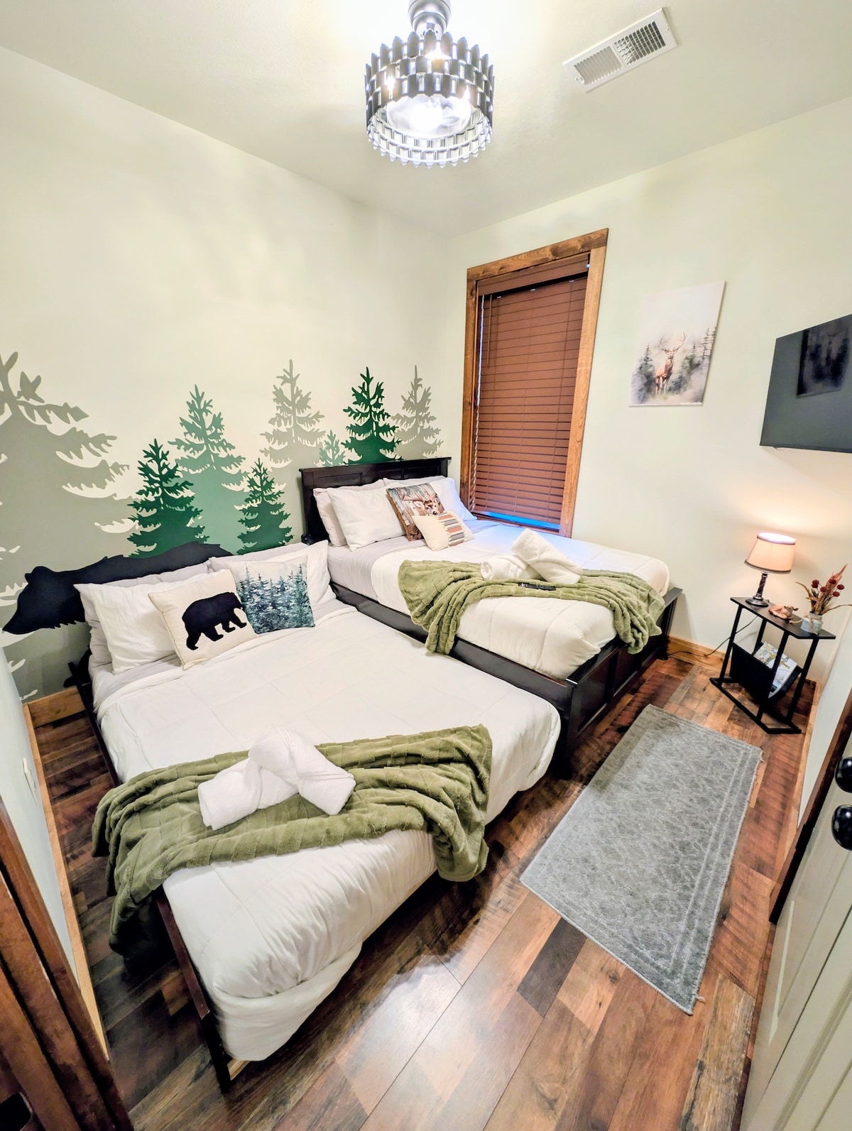 Upplifðu fullkomna blöndu þæginda og náttúrulegrar kyrrðar. Einstaka trjáhúsið okkar er búið nútímalegum búnaði og skapar upphækkað rými sem er bæði íburðarmikið og þægilegt. Fáguð og sveitaleg smáatriðin skapa hlýlegt og notalegt rými. Njóttu fallegs skógarútsýnis frá einkaveröndinni og stargaze á meðan þú liggur í bleyti í upphækkaða heita pottinum. Hvort sem þú kýst þægindi hengirúms og rólu innandyra eða frelsi útivistar höfum við hannað eignir okkar vel með þig í huga.
