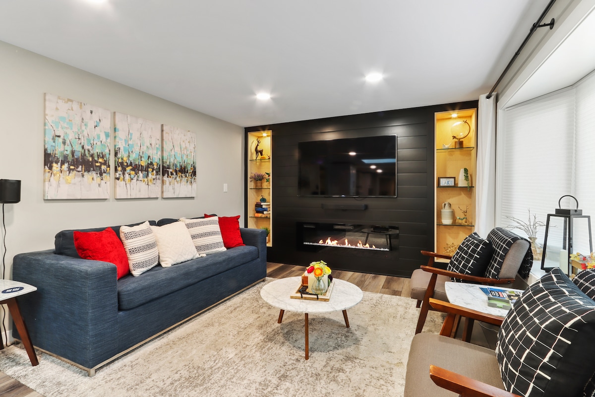 Ótrúleg eign sem tekur vel á móti gestum. Við höfum smíðað þetta listaverk svo að gestir okkar geti sökkt sér í öll þægindin, allt frá upphituðu gólfi til hátölura í loftinu, allt á sama tíma og þú týnir þér í viðararinn. Smáatriðin skipta öllu máli hjá WithInnReach - með áherslu á það sem við njótum...ótrúlegur matur í gegnum eldhús með góðu jafnvægi, fallegu hljóði í gegnum Klipsch-hátalara og afslöppun frá gólfi til lofts í sturtunum...njóttu til hins ítrasta.