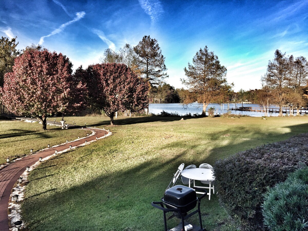 Heimili við stöðuvatn við stóra vatnið við Marion-vatn. Heimilið er við Santee-hlið vatnsins í rólegu hverfi, í 1-2 km fjarlægð frá veitingastöðum, matvöruverslunum, golfvöllum og I-95. Starbucks er í innan við 3 km fjarlægð. *Heimilið rúmar að hámarki 10 gesti. * Heitur pottur innandyra er í boði frá október til mars. *Aðeins skráðir gestir sem skráðir eru í bókuninni eru heimilaðir á gististaðnum nema fyrirfram samþykki hafi verið veitt. *STRÖNG regla varðandi gæludýr. *VEISLUR ERU STRANGLEGA BANNAÐAR*