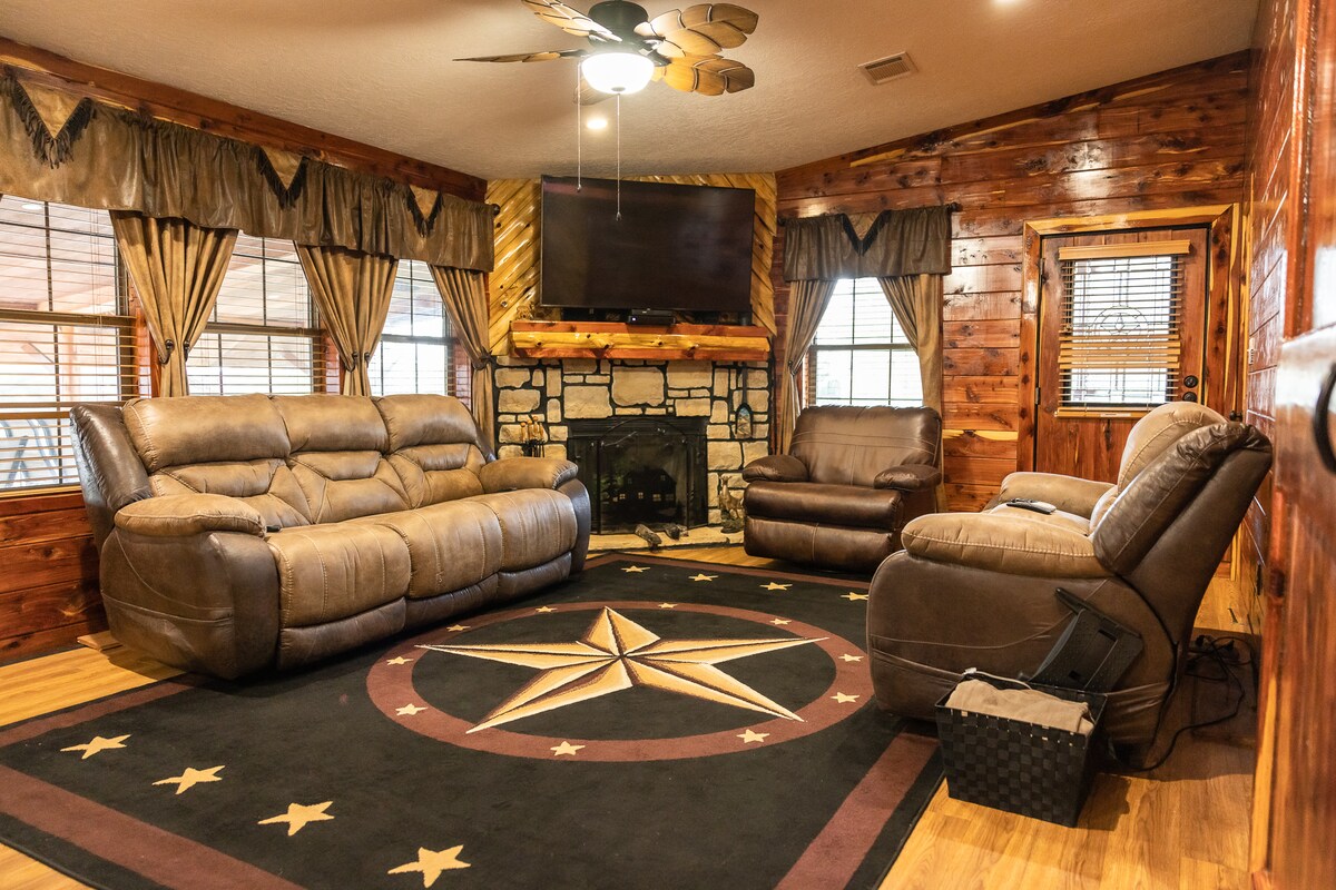 Lakeside Lodge er sérsniðið, handbyggt heimili sem byggt var fyrir þremur árum með fjölskylduvænt andrúmsloft í huga. Hún er staðsett á þremur hektörum við Lake Palestine og er með nóg af slökunar- og borðstofum á veröndinni sem liggur í kringum húsið. Þetta er fullkominn helgarferðarstaður til að skapa dýrmætar minningar með vinum og fjölskyldu! Bílskúrinn hefur verið breytt í afdrep fyrir börnin og er með 4 einbreiðum rúmum. Geymslubyggingin er umbreytt herbergi með 4 queen-size rúmum. Ég hlakka til að taka á móti fjölskyldu þinni! -Chase