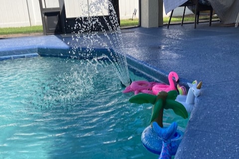 Enjoy this beautiful home thoughtfully detailed for the whole family. There is lots of space for everyone to spread out but still be together. A living room to gather in, TV room with a 65" screen, bedrooms, kitchen, bathrooms, laundry room, pool/spa area & much more; all decorated with the a peaceful Birds and Blossoms theme throughout. A privacy fence offers a secluded area around the pool & hot tub in this quiet community. You will be delighted with the 5* experience we provide for you & pet.