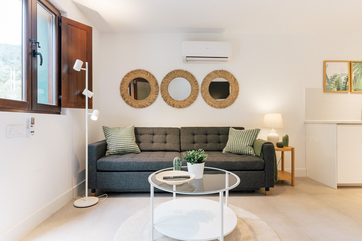 Disconnect from routine and reconnect with nature. Our rural house, surrounded by mountains, is the perfect retreat for those seeking peace and beautiful landscapes. Large windows fill the rooms with natural light and offer views of the surroundings. Just a short drive away, the coast and its stunning beaches allow you to enjoy both sea and mountains in one getaway. Natural materials and outdoor areas invite you to relax and unwind at your own pace.