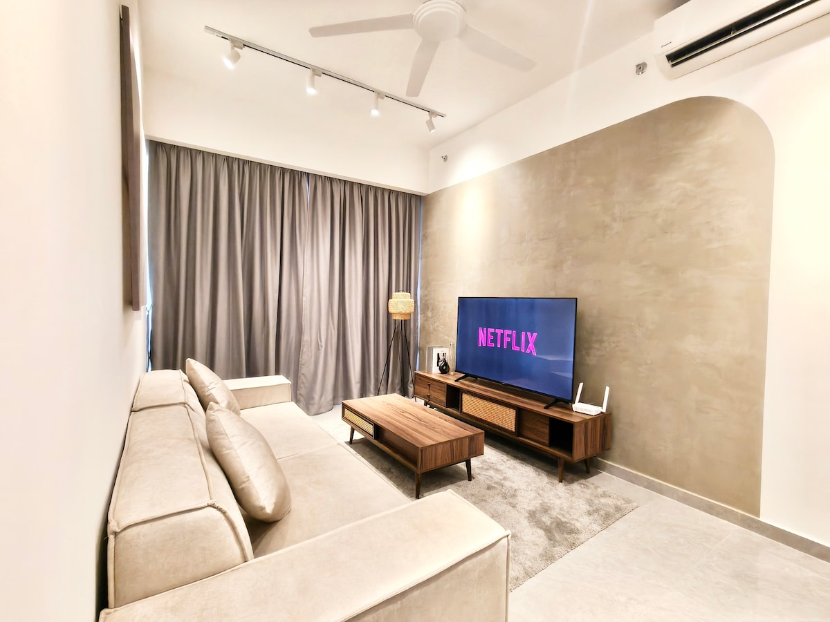 Verið velkomin í lúxusíbúðina okkar með tveimur svefnherbergjum í hjarta Kúala Lúmpúr þar sem nútímaþægindi eru í fyrirrúmi. Þessi glæsilega íbúð er fullkomin miðstöð fyrir heimsókn þína til þessarar líflegu borgar þar sem þú getur sökkt þér í ríka menningu og sögu Malasíu. Hvort sem þú ferðast vegna viðskipta eða skemmtunar er lúxusíbúðin okkar með tveimur svefnherbergjum í hjarta Kúala Lúmpúr fullkomin miðstöð fyrir heimsókn þína til þessarar líflegu borgar.
