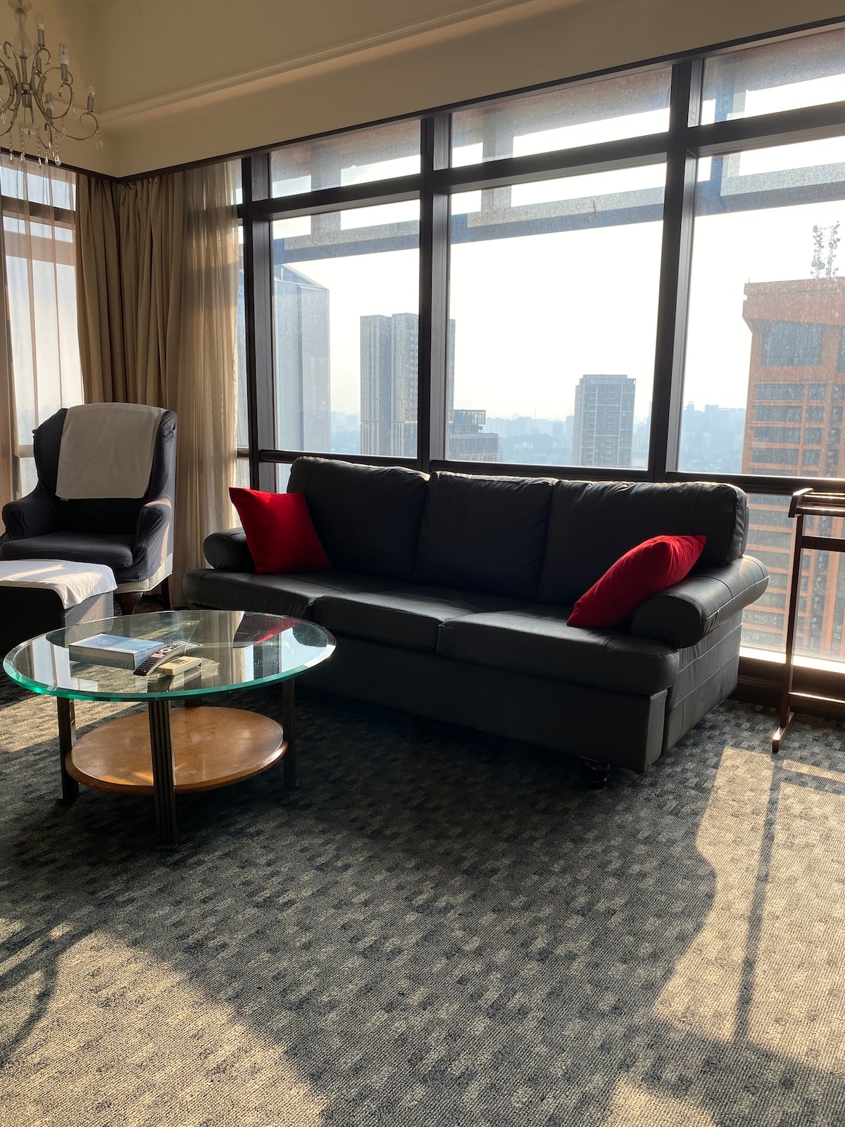 Þessi 1 Br íbúð er með mögnuðu útsýni yfir KL sjóndeildarhringinn. Hér er þriggja sæta sófastofa, borðstofuborð, eldhús, skrifborð og stórar svalir sem snúa að KL Tower & Petronas tvíburaturnum. Það er með 55" sjónvarpi, háhraða ÞRÁÐLAUSU NETI og queen-size rúmi sem passar vel fyrir þig. *Hin einingin í þessari íbúð með tvöföldum lykli er lítið stúdíó með queen-size rúmi, búri, þvottaherbergi og baði. Hún getur passað fyrir vini sem ferðast með þér með næði. Gaman að fá frekari upplýsingar!