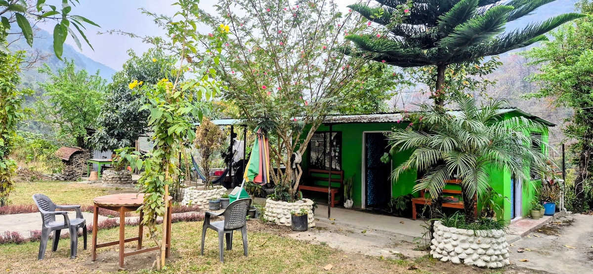 Þú munt ekki vilja yfirgefa þennan heillandi og einstaka stað. Við erum staðsett í fallegu hæðunum í Lamjung. Aðeins 1 klukkustund frá Pokhara á Madhya Nepal ánni. Við bjóðum upp á sjálfboðaverkefni í staðbundnum skólum okkar, búskap, kennslu o.fl. Eða bara finna andlegt sjálf þitt í fallegu heimagistingu okkar með óviðráðanlegu útsýni. Syntu, gakktu, lestu, skrifaðu í fallegustu einkaumhverfi. Njóttu matarins á veitingastaðnum okkar. Deildu upplifunum með styrktum börnum okkar. Morgunverður, hádegisverður og kvöldverður, allt innifalið.