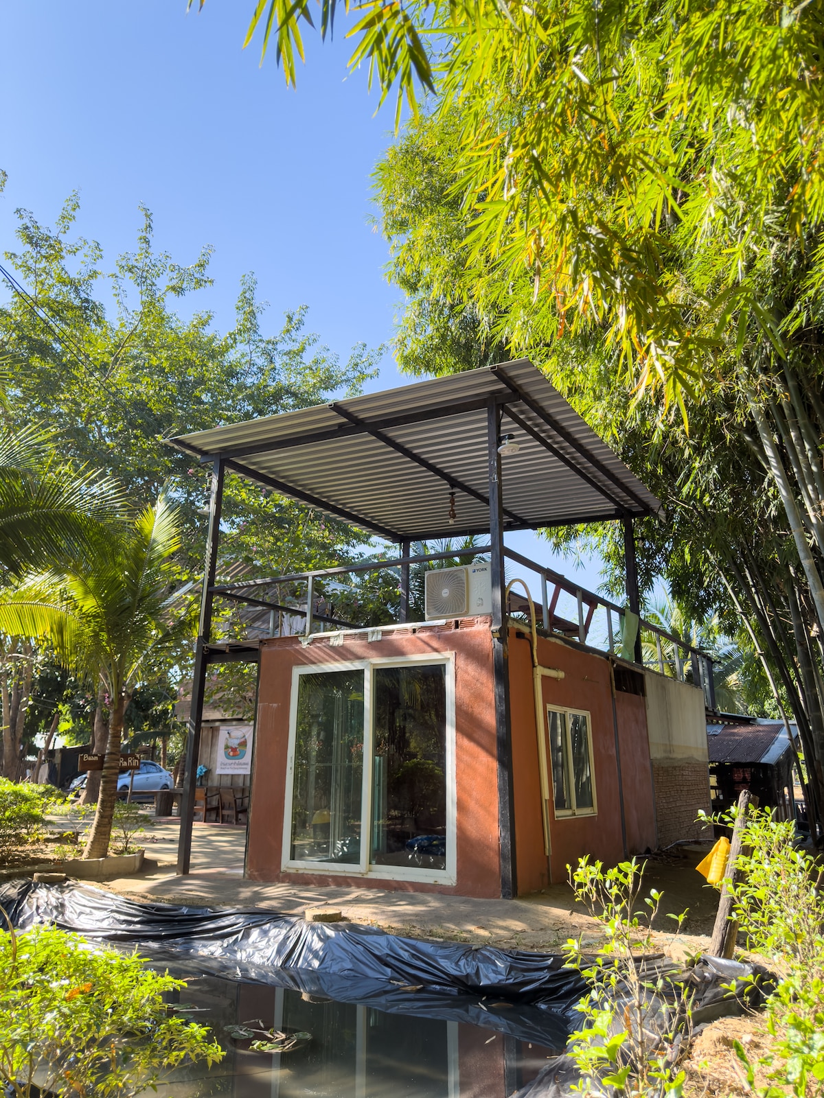 Nýja viðargestahúsið okkar var endurnýjað úr gömlu hrísgrjónahlöðunni á stöllum. Er með fullbúið eldhús niðri. Aðalhæðin er með a/c og heitavatnssturtu. Svalirnar eru með útsýni yfir bambus við hliðina á læk og hrísgrjónaakra. Frábær taílenskur og vestrænn matur í nágrenninu ásamt kaffihúsum, ávaxtasölum og einu af þekktum handverksþorpum Thailands. Vinsamlegast skoðaðu hin gestahúsin mín þetta er eitt af 6 í heildina á lóðinni sem býr til lítið viðarþorp í fallegu garðumhverfi.
