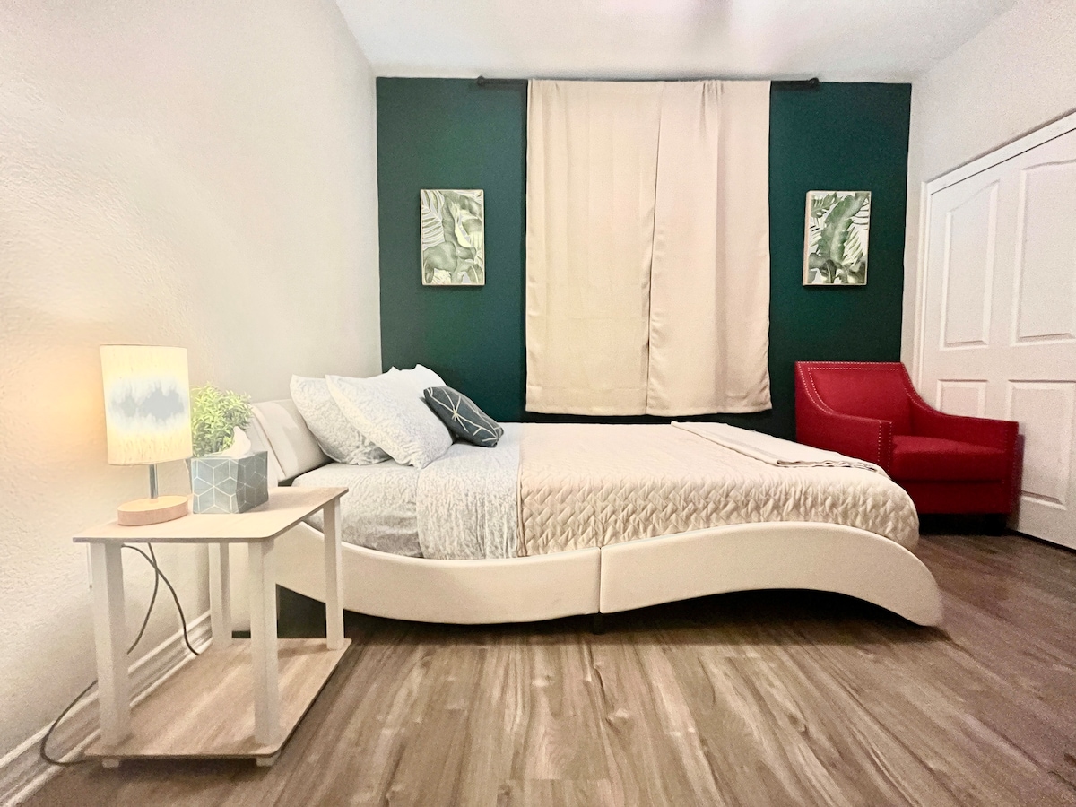 Nútímalegt ofurhreint heimili Aðskilið baðherbergi sem aðeins þú notar mun enginn annar nota það SÉRINNGANGUR Queen-rúm með loftviftu Aðgangur að þvottahúsi fyrir 1 eða 2 fullt af toppum Kaffivél og örbylgjuofn í herbergi (Kaffi/rjómi/sykur í boði) Ísskápur/frystir í fullri stærð sem þú notar Fullur aðgangur að sundlaug Háskerpusjónvarp með Fire Stick w/ Amazon Prime, Netflix, Disney Plus og Paramount Plus Öll rúmföt eru mjög þvegin vandlega eftir hverja heimsókn gesta. Útritunartími: 11:30