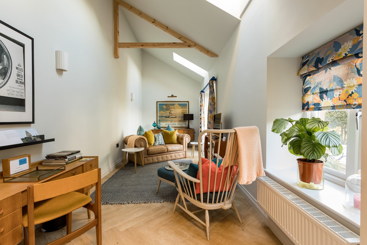 Þetta stílhreina, bjarta og nútímalega, fyrrum bjálka með 1 svefnherbergi býður upp á rúmgóð og þægileg gistirými fyrir par nálægt Williamson Park og Yorkshire Dales. Franskar dyr opnast frá stofunni út á einkaverönd og garðsvæði með hringlaga sumarhúsi með útsýni yfir víðáttumikla garðana. Eignin er með einkabílastæði og er þægilega staðsett við útjaðar Lancaster.