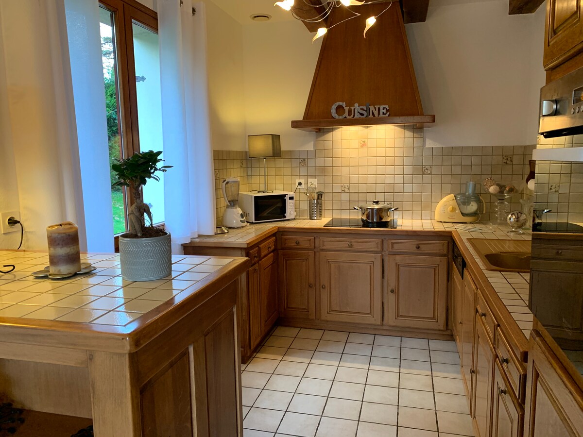 Bústaðurinn okkar með einkasundlaug verður fullkominn staður til að kynnast svæðinu. Staðsett í sveit, 10 mínútur frá ströndum, það býður upp á þægindi og ró. Öll upphitaða innisundlaugin er til ráðstöfunar. Bústaðurinn samanstendur af stofu með opnu eldhúsi að borðstofu og stofu með sjónvarpi og fótbolta. 3 svefnherbergi (2 rúm 140X190 og 2 rúm 90x190) 2 baðherbergi, 2 salerni. Ytra byrði samanstendur af lokuðum garði, 1 verönd með grillaðstöðu og sólbekkjum.