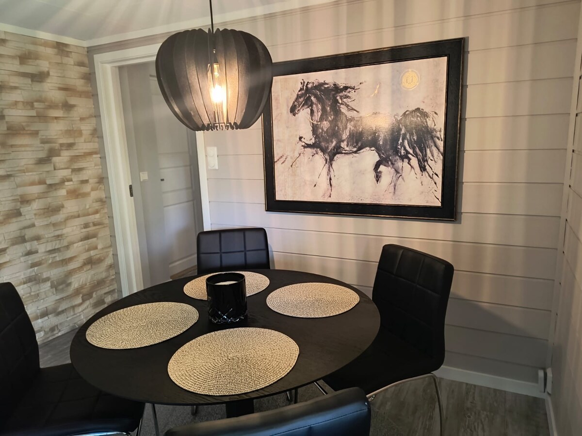 Sestu niður og slakaðu á í þessu rólega og stílhreina rými. Nýuppgerð vetur/vor 23. Stofa með eldhúsi og litlu þvottahúsi með þvottavél, þurrkskáp og straujárni. Eldhús með fjölnota eldavél, framköllunarplötu, kaffivél og katli. Ísskápur og frystir, uppþvottavél. Góður sófi sem getur verið aukarúm fyrir barn. Hægt er að setja inn rúm við hlið. Nýtt flísalagt baðherbergi með svörtum snertingum. Fataskápur/qualkin. Gott útisvæði með garðhúsgögnum og garður niður að vatni. Gapahuk með eldgryfju er hægt að leigja.