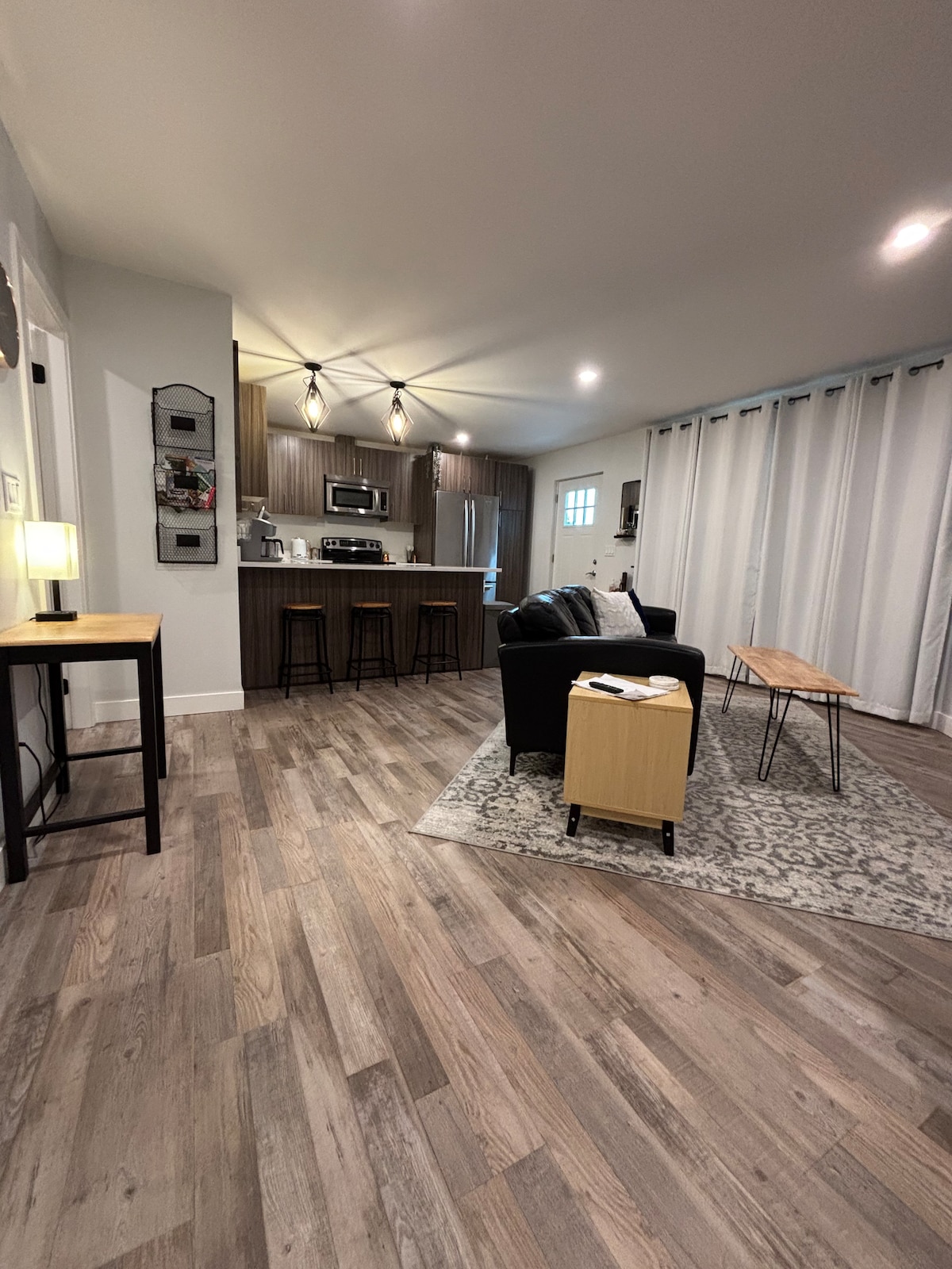 Modern, bright basement studio with queen bed and sofa bed. Fully equipped kitchenette includes cooktop, microwave, kettle, cookware, and flatware. Private bathroom with large walk-in shower and in-suite washer/dryer. Located in a quiet neighborhood near SFU—easy access by foot, transit, or car. Just 30 mins to Downtown Vancouver by car, or 45–60 mins by transit. Clean, comfortable, and stocked with all necessities. Note: We love pets but we DO NOT allow cats.