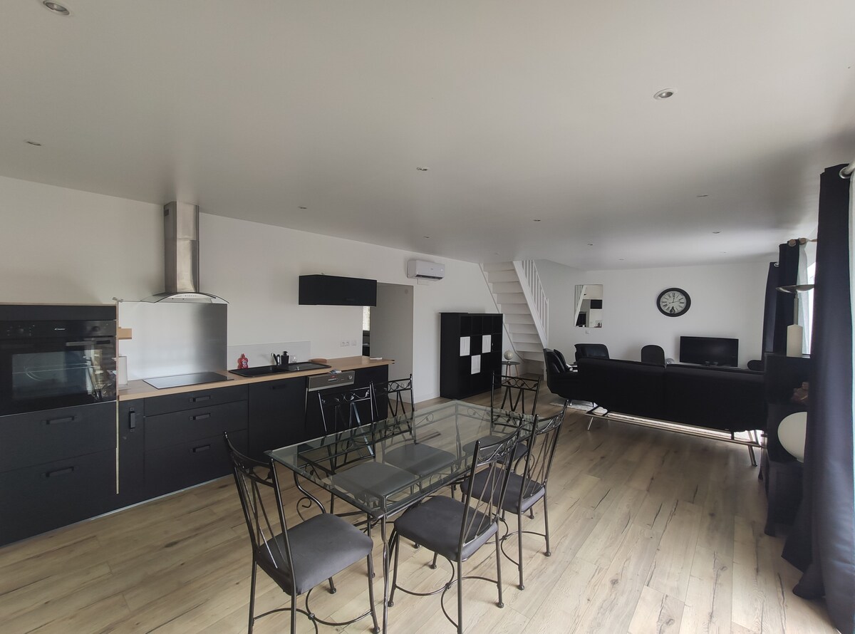Íbúð á jarðhæð með 2 svefnherbergjum með 1 140 cm rúmi, þar á meðal einu með skrifborði Sturtuklefi, fullbúið eldhús Stórt einkabílastæði Hjólageymsla Suðurverönd með nestisborði Strönd í 1600 metra hæð Verslanir í nágrenninu Centre Leclerc, Aldi, Carrefour markaðurinn og Lidl 5 km Cale er 1600 metrar