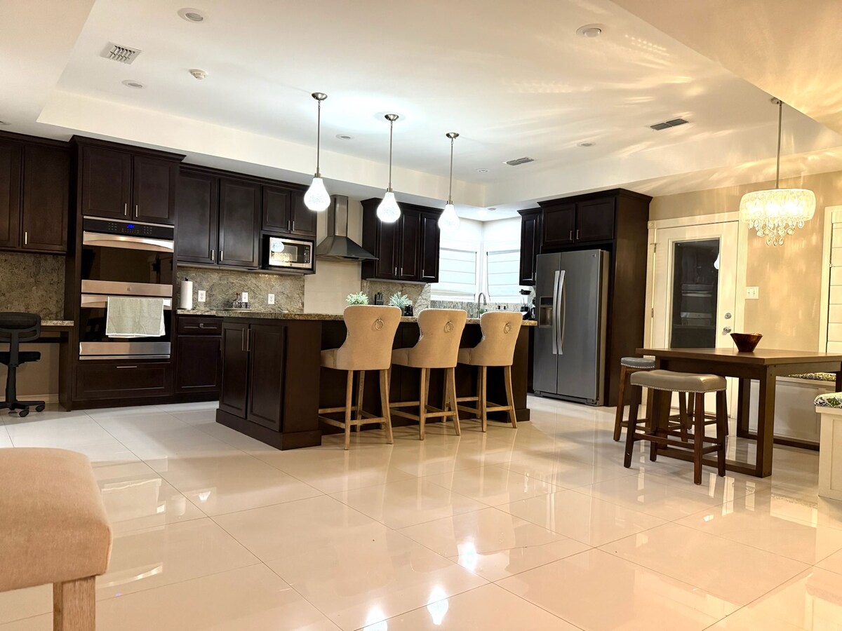 Este lugar único tiene su propio estilo es una casa muy amplia con área de asador y comedor en la parte de atrás para hacer cualquier tipo de parrillada y cuenta con un cuarto con extra aire acondicionado además de una gigantesca Cocina equipada con 3 hornos y estufa para que puedas preparar lo que gustes. Las "FIESTAS" que exceden el numero de huéspedes NO ESTAN PERMITIDAS.
