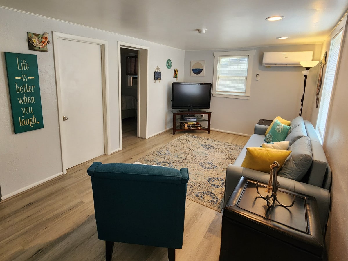 *Construction discount! The yards are undergoing renovations. Please note the seating on the decks is limited and there may be noise in this unit during the day from the work.* Walk into this welcoming apartment and find your paradise! This cozy space has shared access to a large courtyard w/ grill & smoker. Short 10-minute drive to the best world-famous Gulf beaches. Free bikes! Come make yourself at home in this Hidden Oasis 🌴