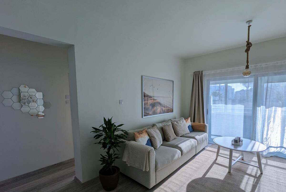 Vaknaðu með útsýni yfir hafið og borgina frá einkaveröndinni með hengirúmi - aðeins í 3 mínútna göngufjarlægð frá Finikoudes-strönd. Njóttu nútímalegrar íbúðar með fullbúnu eldhúsi og rúmgóðri stofu. Slakaðu á á veröndinni með sjóinn glitrandi á daginn og himininn skín við sólsetur. Sofðu vel í loftkældu herbergjunum og vinndu á skilvirkan hátt í sérstakri vinnuaðstöðu með skjá og hröðu þráðlausu neti. Skref frá göngusvæðinu, veitingastöðum, kaffihúsum, verslunum, smábátahöfn, næturlífi og öruggum bílastæðum.