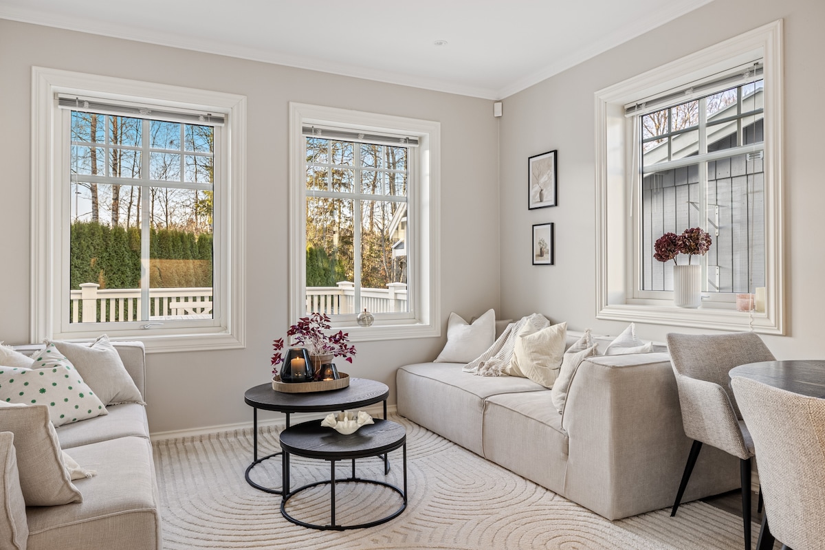 Njóttu kyrrðarinnar í Larvik í nýuppgerðu íbúðinni okkar með einu svefnherbergi. Heimili okkar er staðsett á neðstu hæð og í aðeins 5 mínútna göngufjarlægð frá miðbænum, við hliðina á hinu friðsæla Bøkeskogen, og býður upp á bæði þægindi og friðsæld. Njóttu heillandi útsýnisins yfir sjóinn í rólegu hverfi sem er fullkomið til að slaka á eftir að hafa skoðað þig um í þessum skemmtilega bæ. Tilvalið fyrir þá sem vilja þægindi og greiðan aðgang að áhugaverðum stöðum á staðnum.
