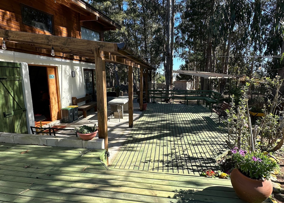 Nuestro Alojamiento esta ubicado a sólo 3 km de la playa, entre Algarrobo y Mirasol, ideal tanto para un escape a la tranquilidad o para disfrutar de las múltiples actividades que ofrece Algarrobo. Te va a encantar nuestro espacio por su sostenibilidad constructiva y por su bajo impacto ambiental. Tratamos nuestras aguas, reciclamos, compostamos y cuidamos nuestra flora y fauna nativa. Alojamiento ideal para parejas y familias. Aceptamos perritos sólo previo requerimiento. No aceptamos fiestas.