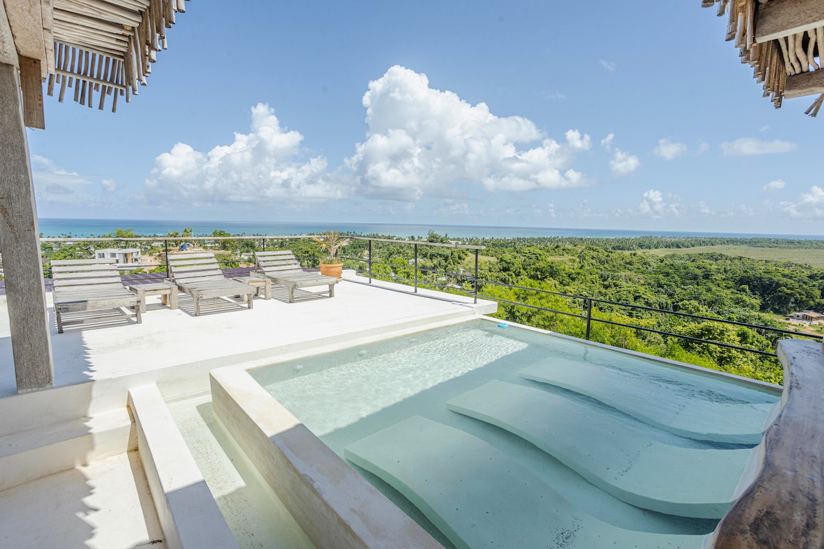 Vaknaðu með stórfenglegt sjávarútsýni í þessari glæsilegu íbúð með einu svefnherbergi í Vista Mare, Samaná. Þessi friðsæla afdrep er fullkomin fyrir pör eða allt að þrjá gesti og býður upp á einkaströnd, endalausar laugar og hröð Starlink þráðlaus nettenging — tilvalin fyrir afslöngun eða fjarvinnu.
