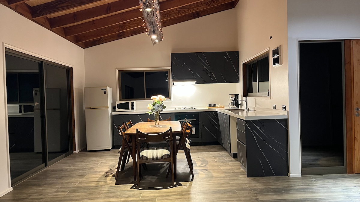 Casa minimalista 150 M2 de dos pisos, arquitectura única, esta al medio de un bosque nativo, vista totalmente despejada sobre el valle, amplia Tinaja, living comedor con cocina abierta, hall de acceso de triple altura, dos amplios dormitorios principales, camas super King, calefacción C/Estufa a pellet, terrazas en dos niveles, parrilla, Internet Starlink, para subir es necesario 4x4, si no tienen su auto queda guardado abajo y nosotros los subimos *Tinaja se cobra aparte. *Tenemos masajes !