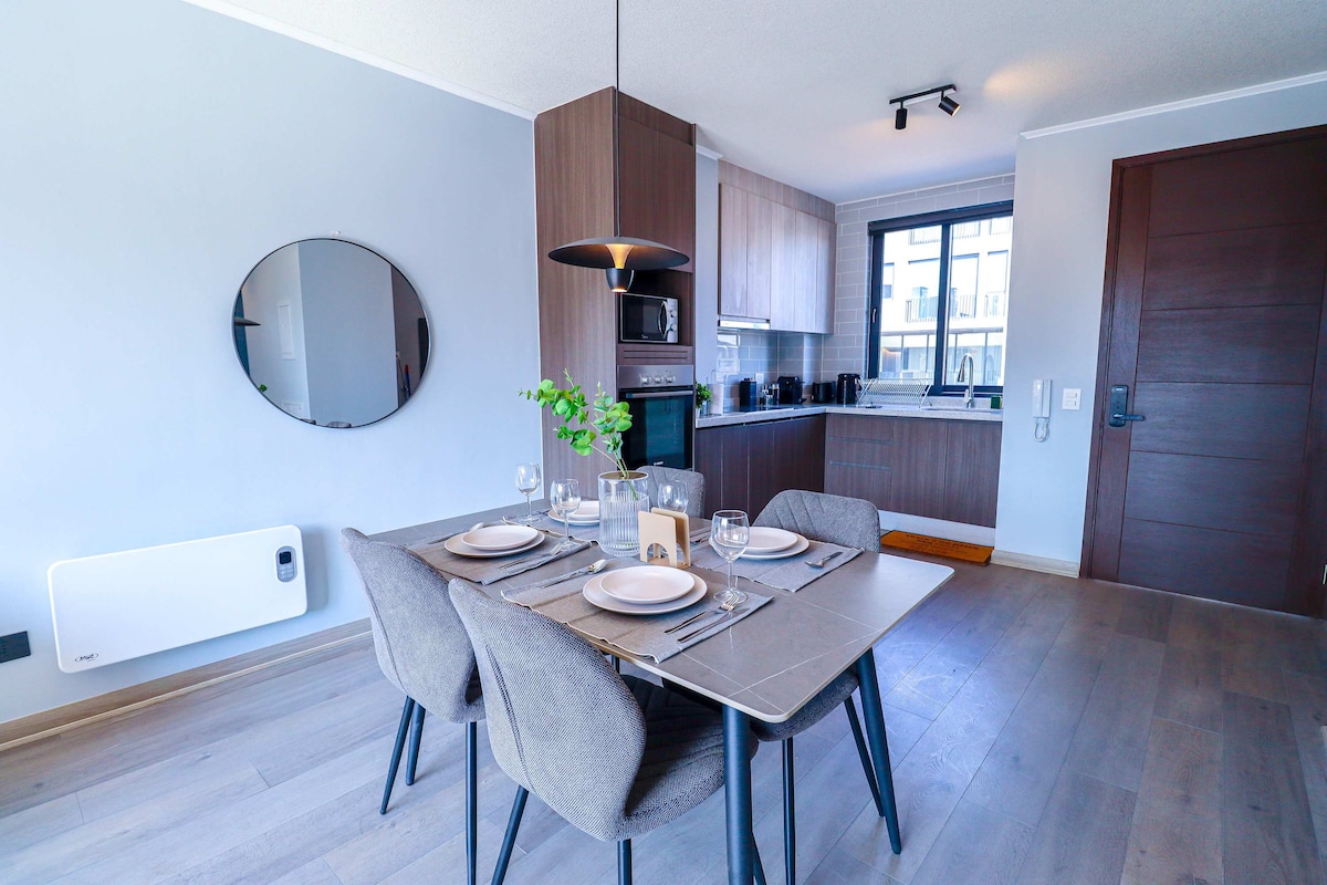 🌟 Verið velkomin á heimili þitt í Santiago de Chile! 🌟 Við erum fegin að taka á móti þér í þægilegri og nútímalegri íbúð okkar sem er staðsett í piso 05, General Bustamante 390, Providencia. Njóttu kyrrlátrar og öruggrar dvalar í einstakri, GLÆNÝRRI byggingu sem er hönnuð með nýjustu tækni fyrir betri frammistöðu. Frábært fyrir hvíldar- eða vinnuferðir. Aðeins 1 mínútu frá Santa Isabel-neðanjarðarlestarstöðinni. 🚇 Nærri Barrio Italia, einum vinsælasta svæðinu fyrir matgæðinga