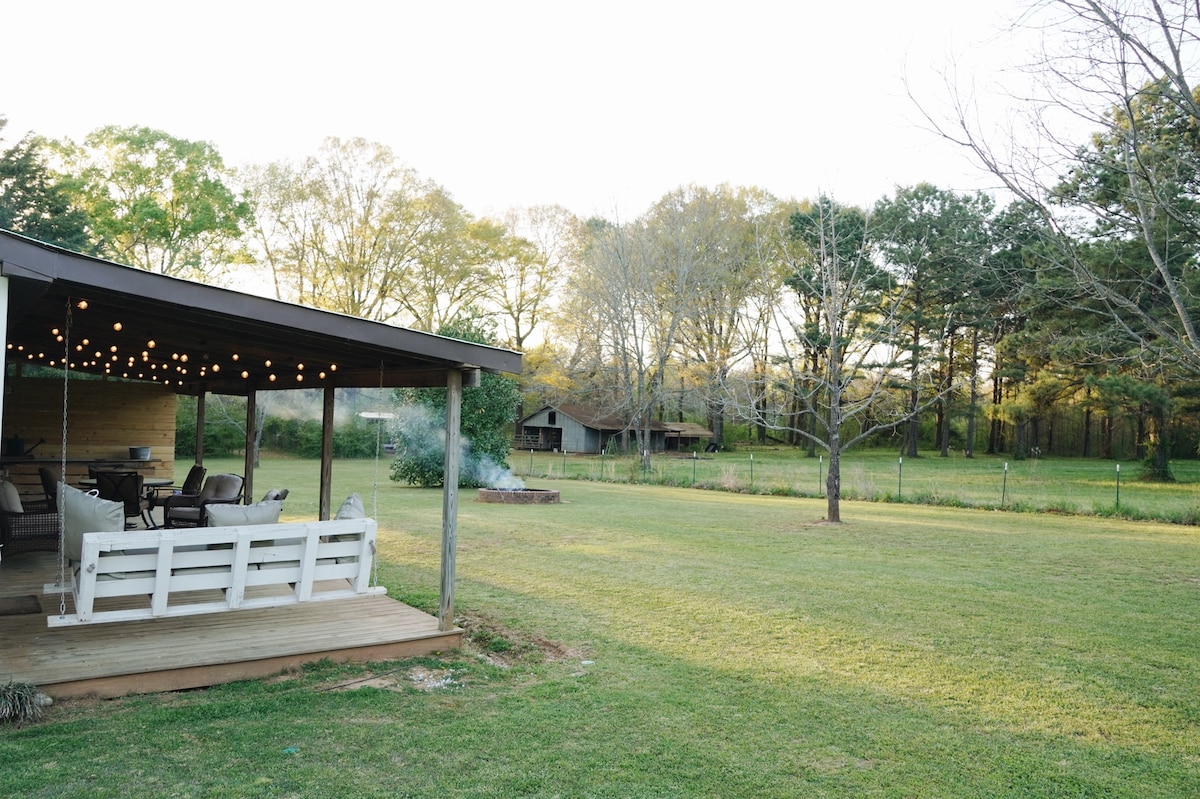 Vildirðu einhvern tímann hengja hattinn þinn upp í sveitalegum bústað við lækinn? Verið velkomin í bóndabæinn þar sem markmið okkar er að hjálpa þér að hressa upp á þig og njóta útivistarinnar. Þú finnur allt sem þú þarft í stuttri gönguferð í skugga frá Second Creek og bókstaflega við hliðina á Joe Wheeler State Park. Slakaðu á í þægilegu, rúmgóðu rúmi, slakaðu á á sófanum eða slakaðu á á veröndinni fyrir framan húsið. Við erum viss um að þér mun líða vel með kyrrláta orlofsheimilið okkar.