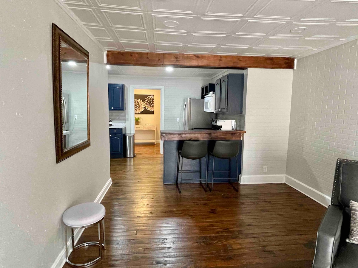 Upplifðu eina aðganginn á jarðhæð í miðbæ Laurel; engar tröppur, bara áreynslulaus þægindi! Þetta fallega afdrep er með mjúku king-rúmi, granítborðplötum, notalegum arni og sturtu með aðgengi fyrir fatlaða. Gakktu að vinsælum veitingastöðum, verslunum og áhugaverðum stöðum um leið og þú nýtur aðgangs að skrúðgöngum, hátíðum og viðburðum. Hvort sem þú ert hér til að slaka á, skoða þig um eða halda upp á þennan frábæra stað setur þessi frábæra staðsetning þig inn í hjarta alls þessa. Bókaðu núna til að eiga ógleymanlega dvöl!