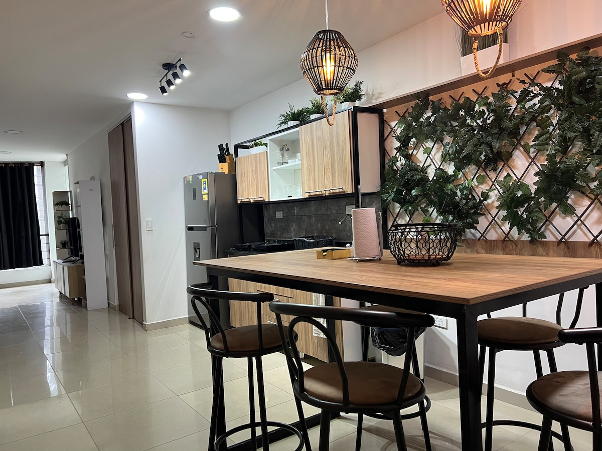 Apartamento localizado en zona céntrica de la ciudad, segura y tranquila. Esta cerca de vías principales, supermercados y de la Carrera 70 donde podrás encontrar buenos restaurantes y centros nocturnos cerca. Fácil acceso a rutas de transporte publico. Apto de 2 niveles Comodidades: • Habitación: • Cama King • TV con Netflix • Area de trabajo • Baño con agua caliente • Cocina completamente equipada con nevera • Zona de ropas con lavadora • Wifi 350Mb • Sofacama • Balcón