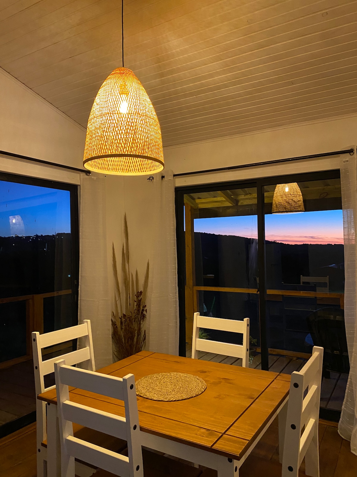 This cabin in Villa Serrana is a unique place that offers a luxurious experience in a natural setting. This elegant, brand-new home is designed to accommodate up to three people, making it the perfect retreat for small groups looking to relax and enjoy the tranquility of the area. With high-quality finishes and sophisticated decor, every corner of the house has been designed to provide comfort and style.