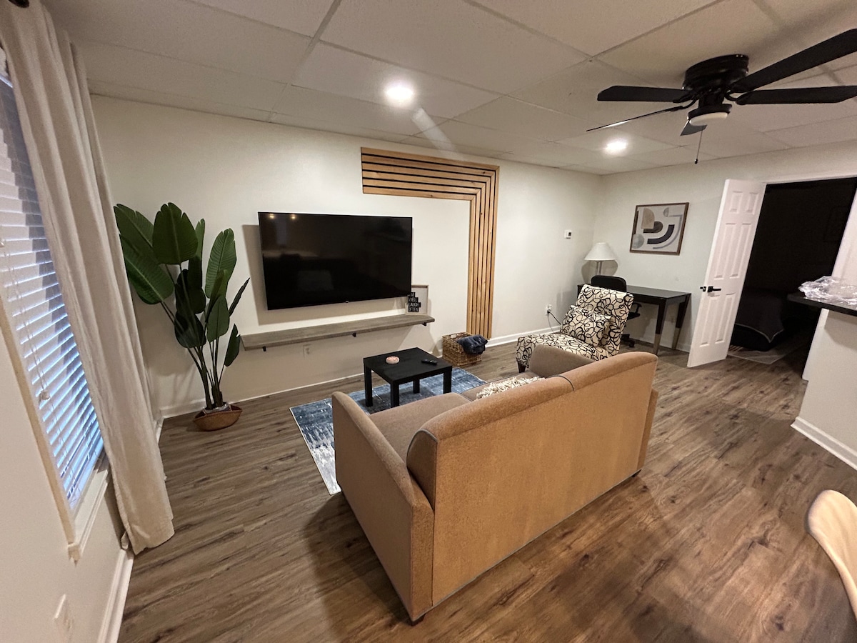 Nýlega uppgerð 1337 fermetra séríbúð í kjallara með sérinngangi með 2 svefnherbergjum (1 King og 1 Queen) og svefnsófa (queen) og 2 fullbúnum baðherbergjum. Fullbúið eldhús með ísskáp, eldavél, ofni, örbylgjuofni og kaffi-/tebar. Stofa er með stórt Samsung LCD-snjallsjónvarp. Svefnherbergin eru einnig með snjallsjónvarpi. Nálægt The Mall of Georgia (4,7 km) og Infinite Energy Center (um 8 km). Gestir eru ekki leyfðir nema þeir séu í bókuninni. Reykingar bannaðar.