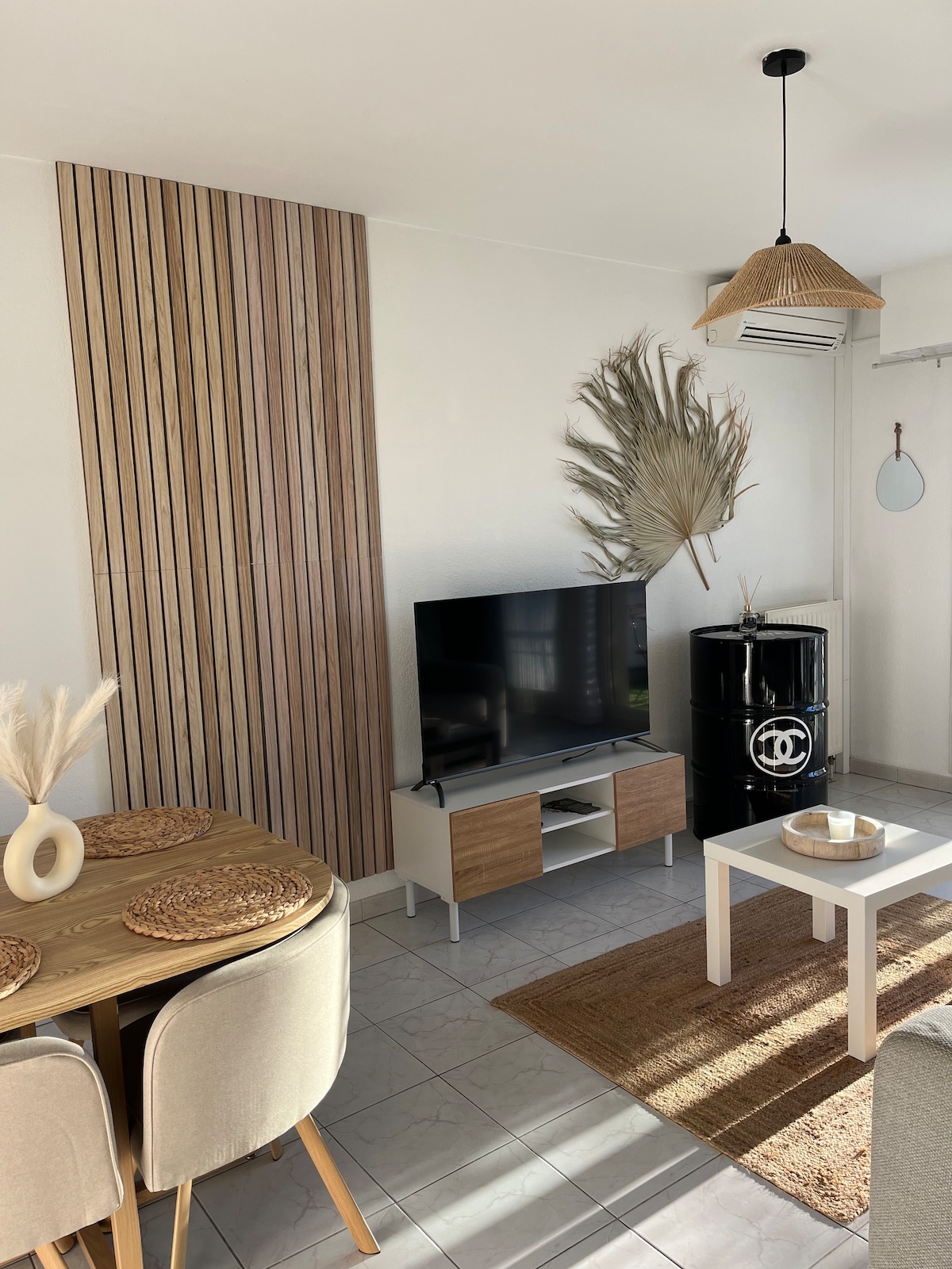 Fullbúin íbúð, 80 fermetrar, yfirgripsmikið sjávarútsýni, falleg verönd, nokkrar mínútur frá sjó og cane Center 15 mínútur með bíl/rútu frá hátíðarhöllinni, nálægt canet búð á fæti (göngusvæði), mjög notaleg sundlaug, lokað bílskúr eða öruggur úti garður (2. auka bílastæði ef þörf krefur), búin eldhúsi með öllum tækjum, baðherbergi auk sturtuherbergi, 2 aðskilin salerni, tilvalið fyrir fjölskyldu með börn, eða pör, trefjar þráðlaust net, alþjóðlegt sjónvarp