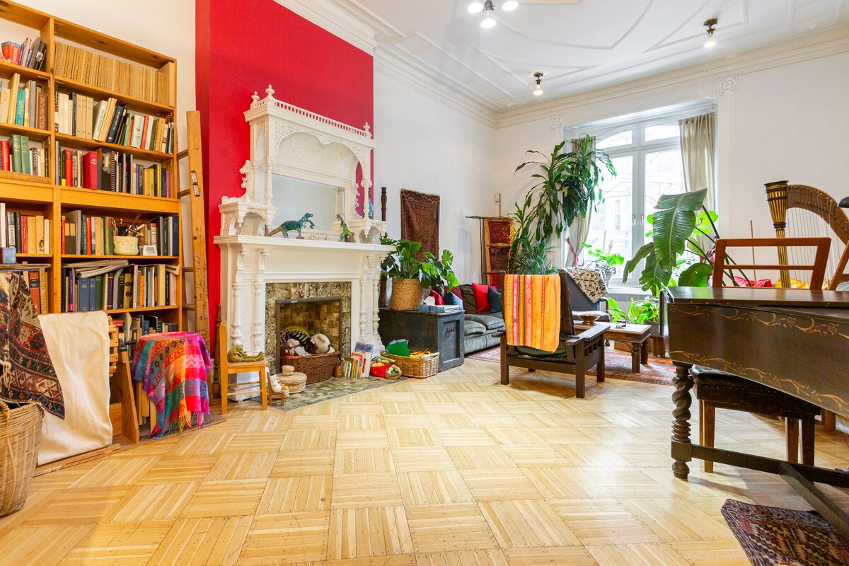 Heillandi, glæsileg íbúð á aðalhæð í fallegu, litríku, plöntufylltu, 19. aldar bæjarhúsi í miðborg Montreal með tréverki, 14 loftum, arni, loftræstingu og öllum mögnuðum kostum! Nálægt McGill University, Place des Arts, miðbæjarkjarnanum, Mont Royal og hip Plateau svæðinu, veitingastöðum, kaffistöðum, leikhúsum og 7 mínútna rútuferð til Old Montreal og nálægt tveimur neðanjarðarlestarlínum og nokkrum aðalstrætólínum. CITQ Établissement no 307726