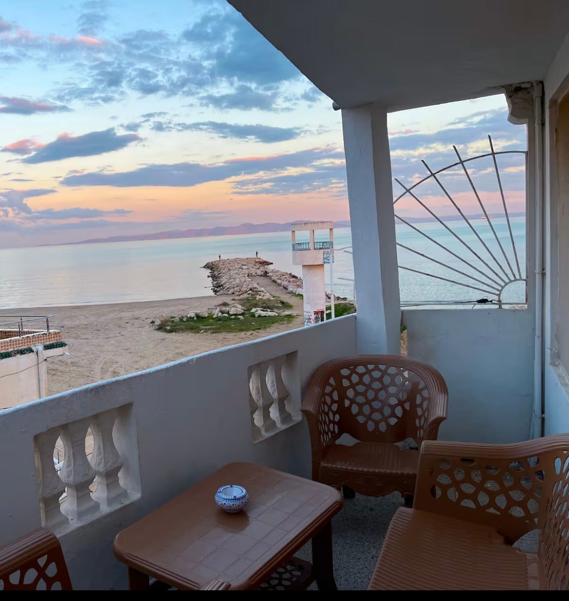 Við bjóðum þér að uppgötva Túnis, með því að taka á móti þér í íbúð okkar á 120 m2, á efstu hæð íbúðarhúss, við sjávarsíðuna, sem býður þér einstakt útsýni. Það er staðsett norðan við Túnis, aðeins 20 mínútur frá flugvellinum. Það er nálægt öllum verslunum. Einkaþjónn byggingarinnar er til ráðstöfunar allan sólarhringinn.