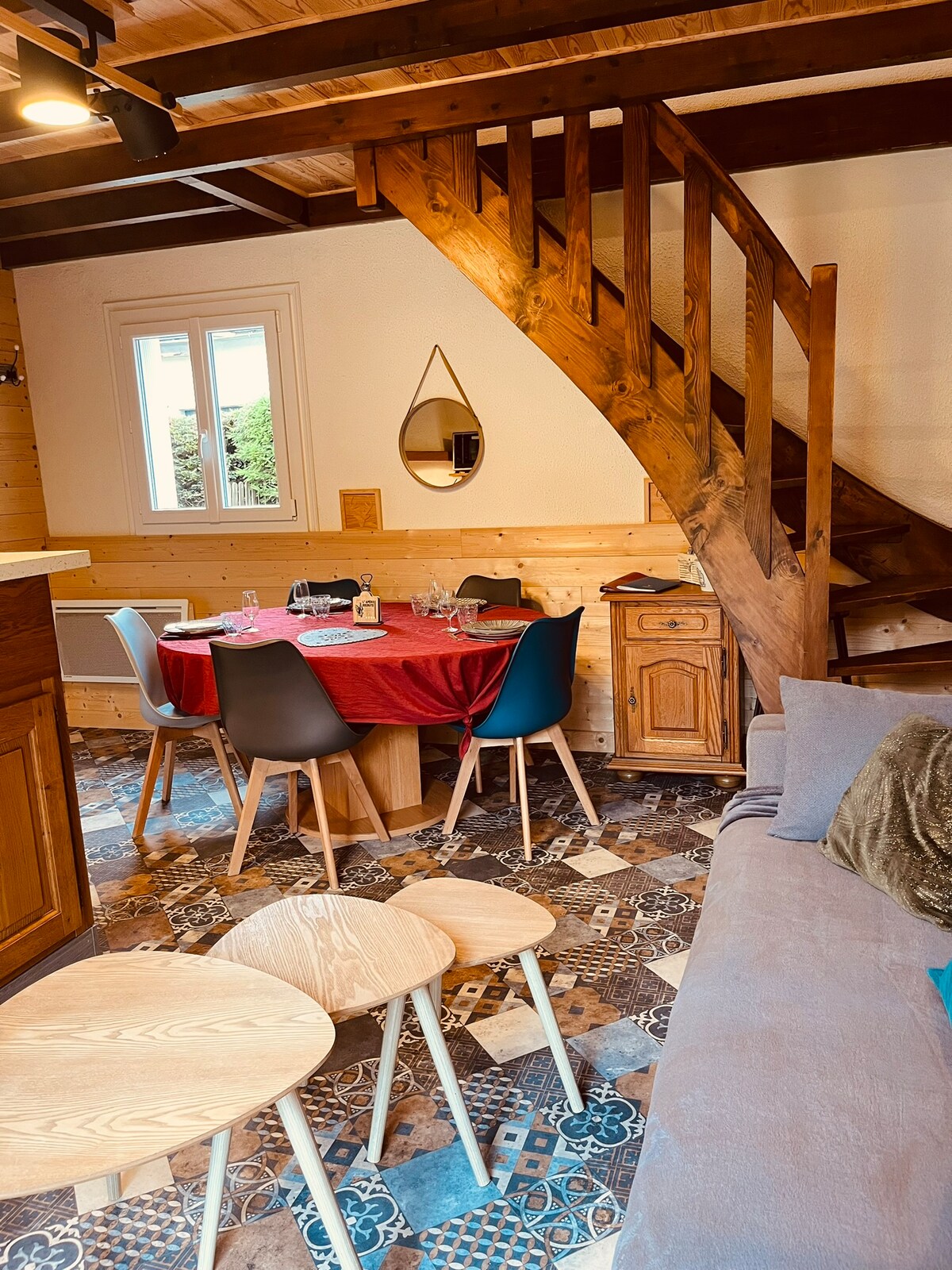 Magnifique chalet de 140m2 refait à neuf comprenant une grande pièce de vie de 45m2 avec une cuisine équipée (robot de cuisine , robot café grains , raclette crêpière fondue, Nespresso Il comprend 5 chambres dont trois avec des lits king size, une avec un lit queen size et une avec 4 lits superposés 2 salles de bain linge de lit inclus Ménage possiblefin de séjour Coin repas ombragé, pour la saison d été