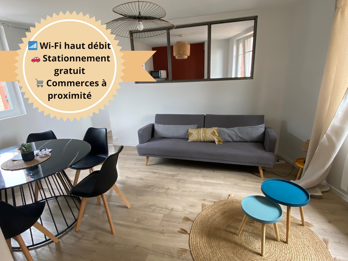 Njóttu nýs, stílhreinna og á frábærum stað. Þetta endurnýjaða T2 samanstendur af svefnherbergi, stofu/borðstofu, eldhúsi og sturtuklefa með salerni. Staðsett í 15 mínútna göngufjarlægð frá dómkirkjunni, 5 mín frá leikvanginum og þú getur notið allra þæginda. Starfsmaður eða gestur, þú ert með sérinngang og ókeypis bílastæði. Sé þess óskað: - Möguleiki á að skýla 2 hjólunum þínum í lokuðum bílskúr. - Setja upp og undirbúa annað rúm (ef 2 aðskilin rúm).
