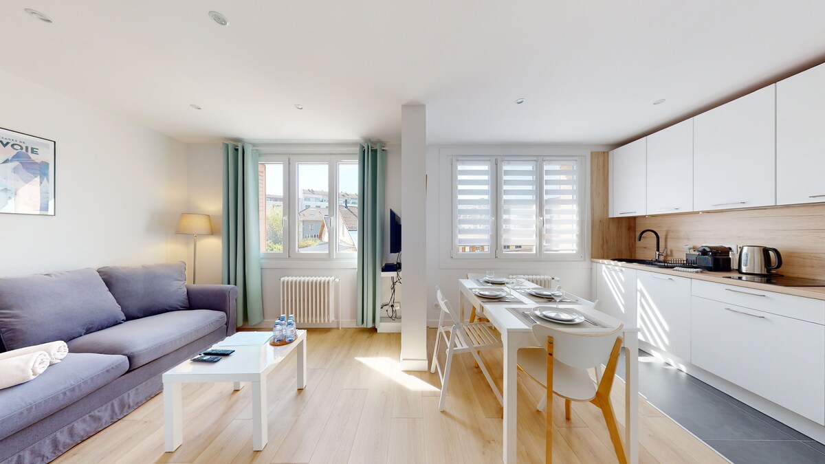 Dýfðu þér í einstakt andrúmsloft í hjarta Annecy með því að gista í lúxusíbúðinni okkar sem er fulluppgerð og smekklega innréttuð. Fágaðar skreytingarnar endurspegla nútímalegan og fágaðan stíl sem skapar heillandi andrúmsloft frá því að þú kemur á staðinn. Aðeins í 1 mínútu göngufjarlægð frá vatninu, í næsta nágrenni við lestarstöðina og verslanirnar.<br>Rúmtak fyrir 2 einstaklinga <br> < br > <br> 35m2 íbúð━━━━━━━━━━━━━━━━━ <br> < br > <br>━━━━━━━━━━━━━━━━━<br>