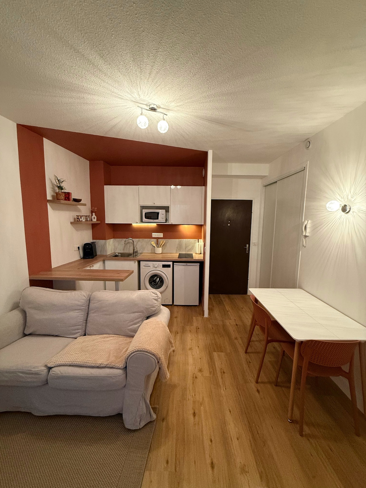 Heillandi hljóðlátt og fullbúið stúdíó í hjarta Agen.📍 Þú munt njóta þessa líflega hverfis með kaffihúsum, gómsætum veitingastöðum og mörgum verslunum.✨ Nálægt öllum þægindum sem þú ert í 9 mínútna göngufjarlægð frá lestarstöðinni, 3 mín frá ferðamannaskrifstofunni.