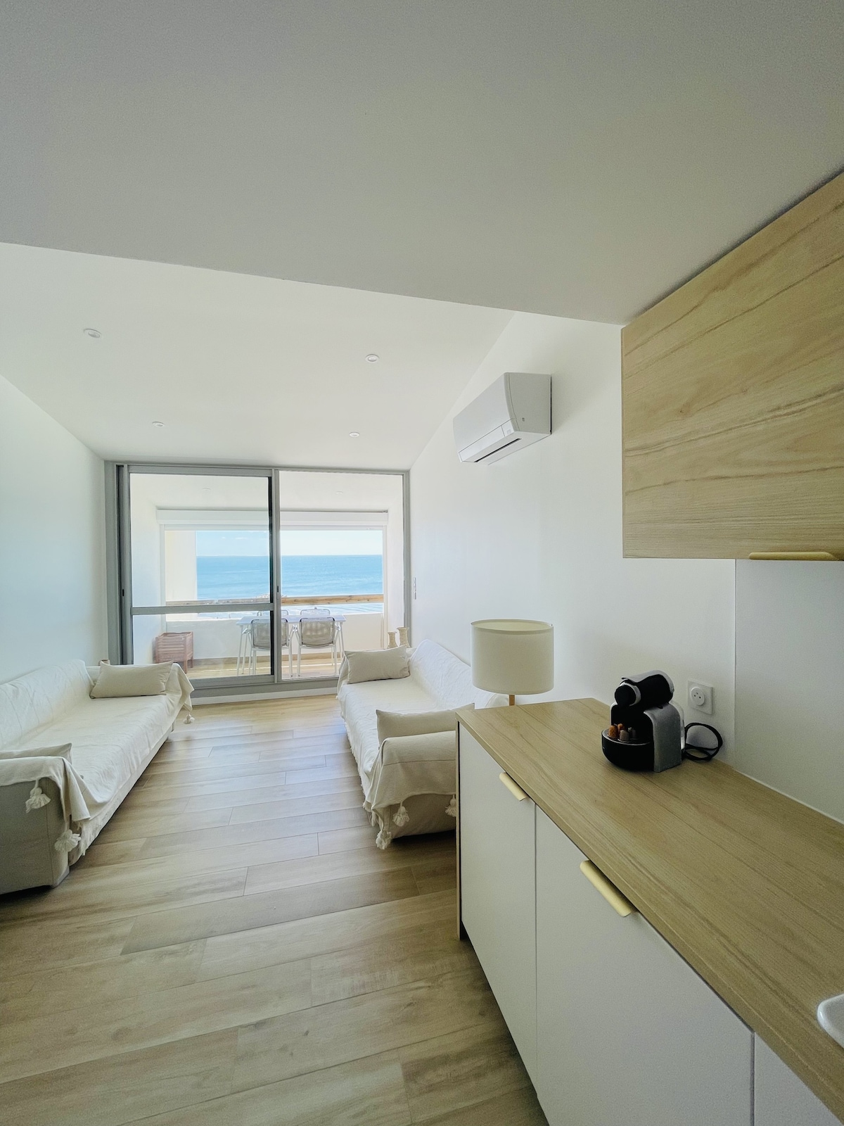 📸@sunsetstudio_carnon Sunset Studio****, classé officiellement meublé de tourisme 4 etoiles, en première ligne à Carnon Plage. Entièrement rénové par un architecte avec matériaux haut de gamme, il offre une vue mer panoramique avec terrasse privée. Au 2ᵉ et dernier étage avec cuisine sur mesure, linge et serviettes hôteliers, lave-linge, lave-vaisselle, Wi-Fi rapide, Apple TV, projecteur et décoration élégante. Un cocon chic et lumineux, idéal pour un séjour les pieds dans l’eau