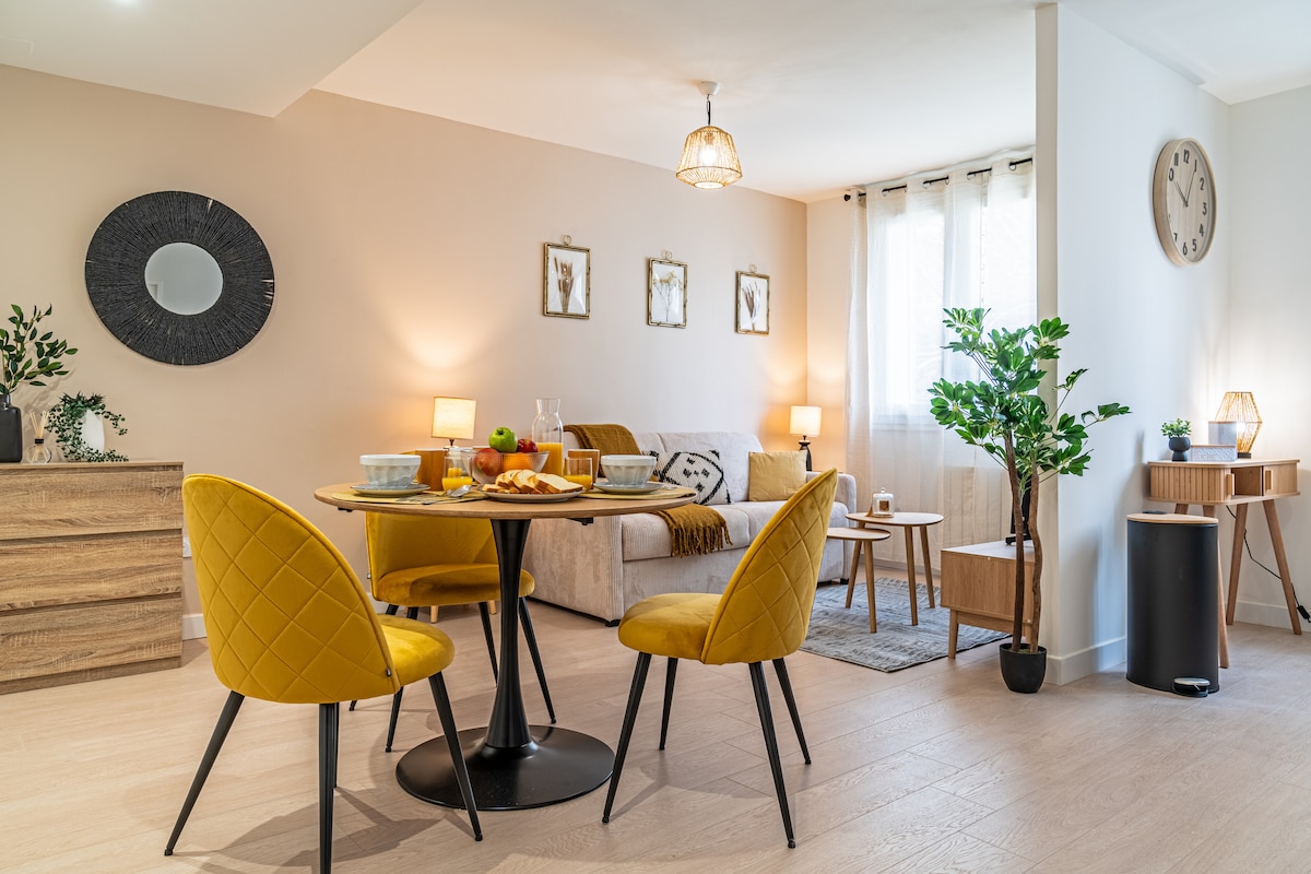 Nýuppgerð og notaleg íbúð með 2 einkasvefnherbergjum (45m2*) í mjög hljóðlátri 2ja hæða byggingu. Hágæða rúmföt og rúmföt, fullbúið eldhús, tandurhreint, 1 einkabílastæði með fjaraðgangi, komu í fullu sjálfstæði *Það er setustofa, sjónvarp með skrifstofu í hjónaherberginu en engin aðskilin stofa. 10 mín ganga að Place Condorcet með framúrskarandi bistróum og börum