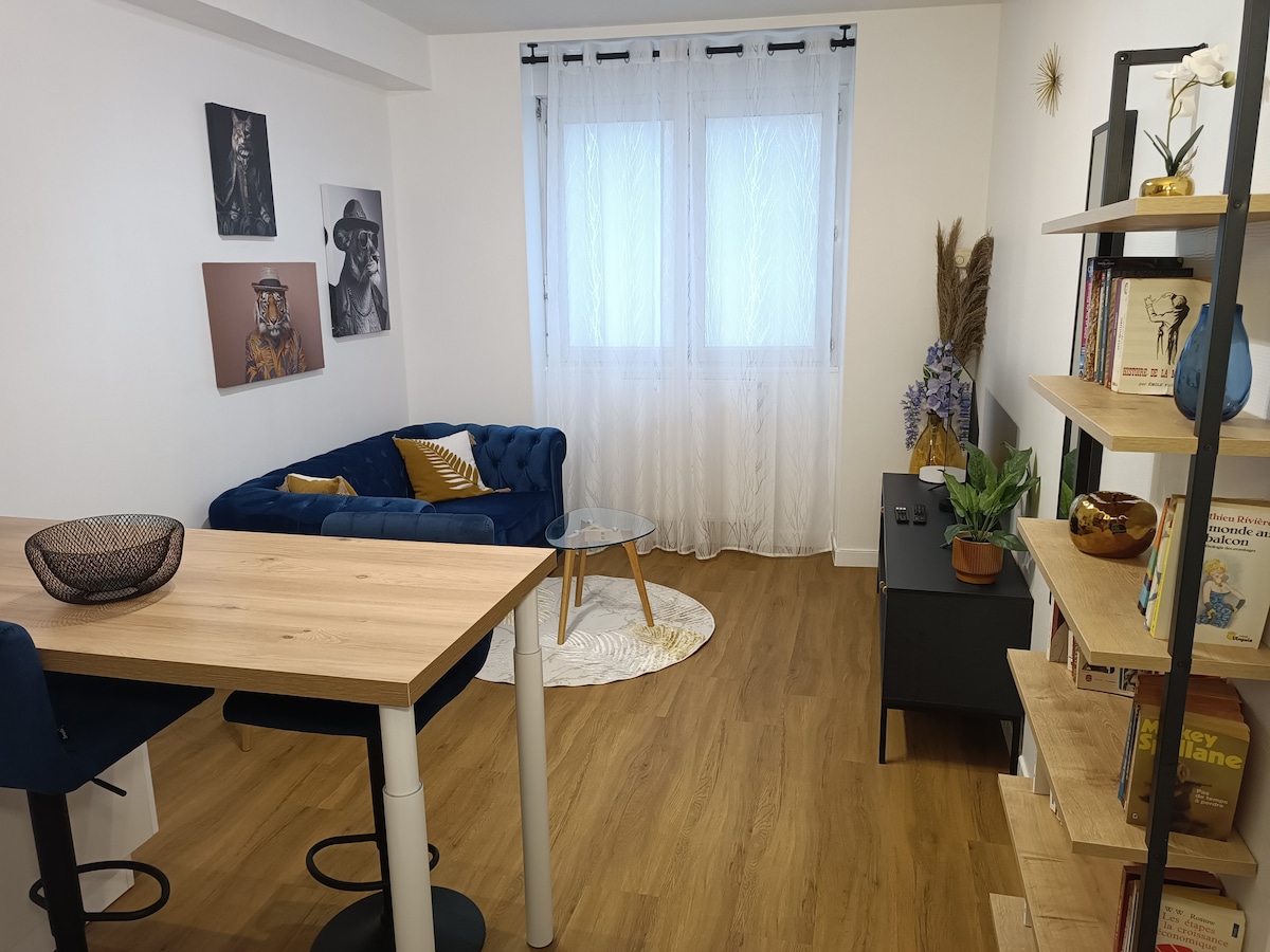 Slakaðu á í þessu rólega og stílhreina heimili með heitum potti fyrir gistiaðstöðuna (fullkomið til að slaka á með hágæða nuddþotum). Íbúð staðsett í miðborginni ( Place du lóð), það hefur nýlega verið endurnýjað! Premium rúm (160x200), fullbúið eldhús (ísskápur, ofn, eldavél, kaffivél, diskar). Netflix í sjónvarpinu. Mögulegt að leigja það vikulega eða mánaðarlega á mjög góðu verði! Hlakka til að sjá þig:)