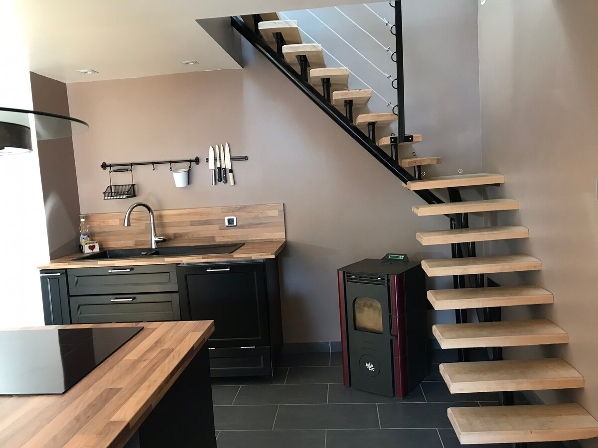 Kynnstu varðveittu landslagi okkar frá þessu heillandi, nýuppgerða og fullbúna T2 í smábænum Saint Amé. Nálægt Remiremont, vötnum, skíðabrekkum og steinsnar frá hjólastígnum. Nálægt mörgum veitingastöðum og verslunum á staðnum þar sem þú getur kynnst sérréttum svæðisins. Fyrir gönguáhugafólk bjóða gönguleiðir Massif des Vosges upp á magnað útsýni yfir náttúruna í kring með gönguleiðum sem henta öllum stigum.