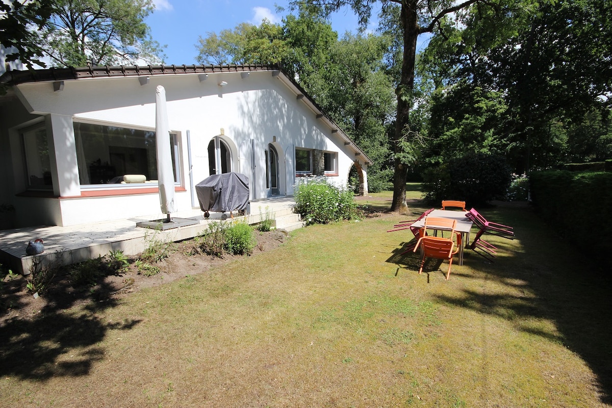Nokkuð nútímaleg villa á 1700m2 svæði, 5 mínútum frá miðborginni og verslunum, nálægt íþróttastarfsemi (tennis-equitations-golf-sund sundlaug). Fallegar sólardvalir N/A, þú finnur alla þægindin í þessari rúmgóðu villu, með fallegum stofum, björtum og hlýjum, með viðarinum. Tilvalin staðsetning til að gista hjá fjölskyldu eða vinum. Lokað bílastæði 4/6 bíla.