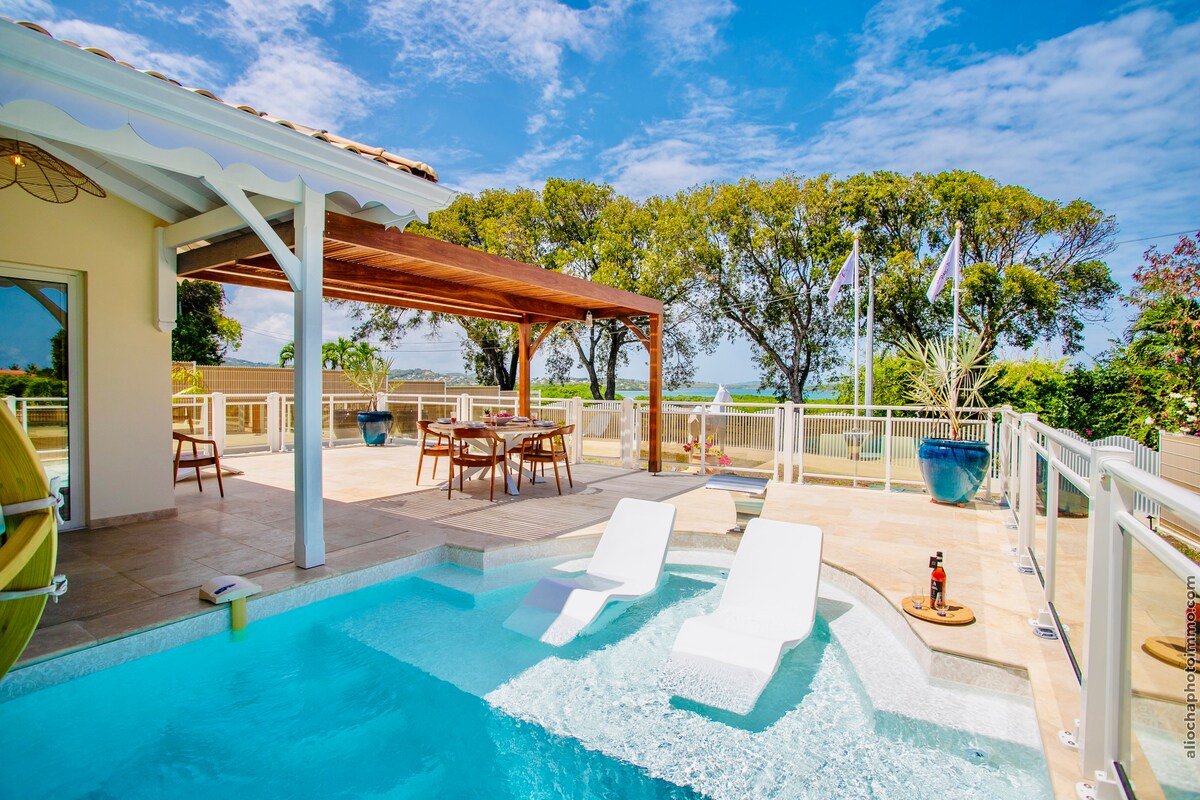 *** ÓVIÐKOMANDI VIÐBURÐIR *** Sökktu þér í friðarhöfn í hjarta Vauclin, Martinique. Þessi íburðarmikla villa, tilvalin fyrir frí með fjölskyldu eða vinum, sameinar þægindi, glæsileika og afþreyingu. Njóttu friðsæls umhverfis með mögnuðu sjávarútsýni, hágæðaþægindum og rýmum sem eru hönnuð fyrir vellíðan þína.