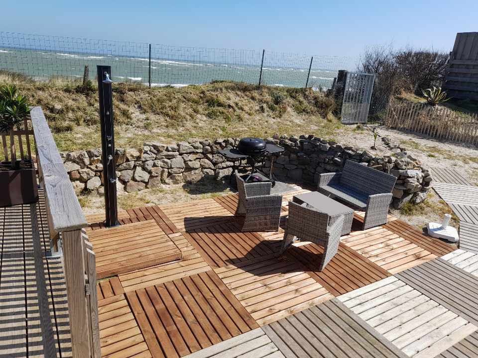 Bústaðurinn er fiskimannahús fyrir 4/6 manns (2 svefnherbergi). Mjög rólegt, húsið er við enda cul-de-sac. Bústaðurinn er útbúinn nauðsynlegum búnaði fyrir fríið (uppþvottavél, þvottavél, grill...) Til að fá hugarró er boðið upp á rúmföt og handklæði. Húsið samanstendur af stofu (breytanlegum sófa), baðherbergi, aðskildu eldhúsi með útsýni yfir lokaðan garð sem snýr í suður með viðarverönd og ávaxtatrjám. Svefnherbergin eru tvö á hæðinni.