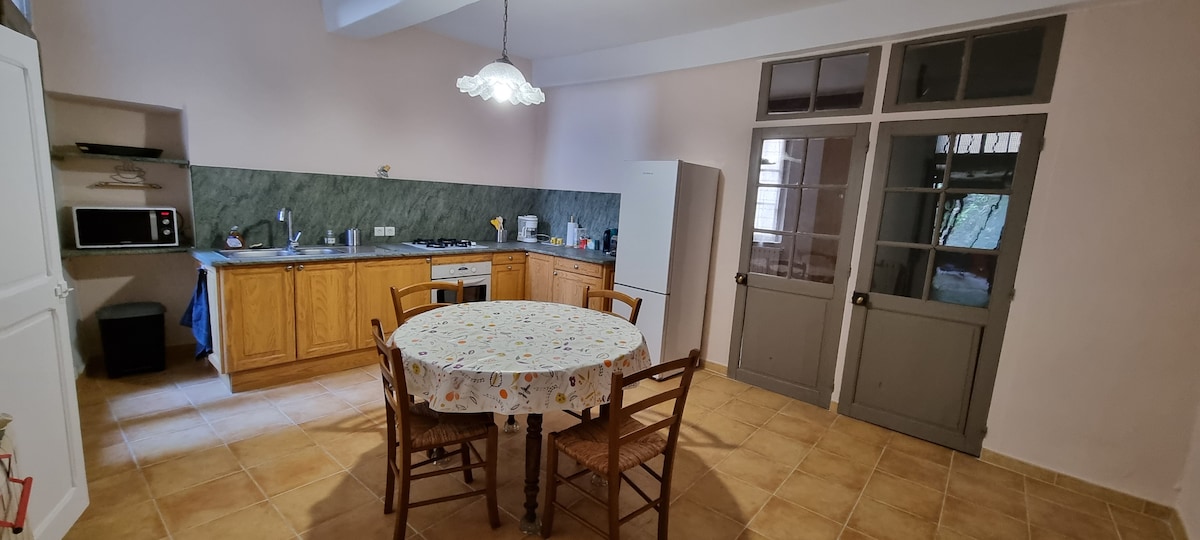 Góð staðsetning í Le Vigan. Þú ert í 5 mínútna fjarlægð frá markaðnum og miðborginni, í 2 mínútna fjarlægð frá ánni, í 50 mínútna fjarlægð frá Mount Aigoual, í 35 mínútna fjarlægð frá Cirque de Navacelles og miðsvæðis fyrir allar brottfarir gönguferða í Cevennes. Íbúðin er algjörlega sjálfstæð á annarri og efstu hæð í fjögurra hæða byggingu. Þú getur notið litlu svalanna til að borða í skugganum á hádegi og í sólinni á kvöldin með útsýni yfir garðinn.