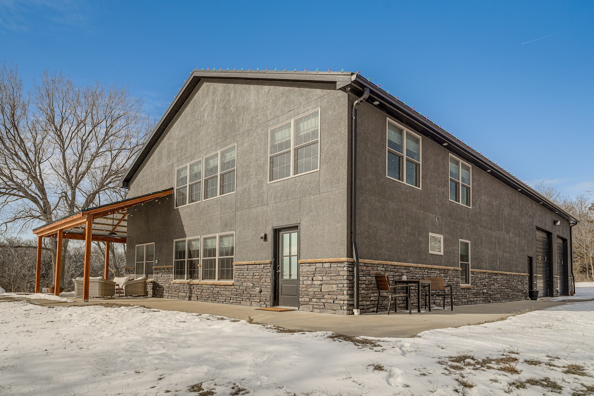 Patio & Fishing Pond! Modern Barndominium Near KC