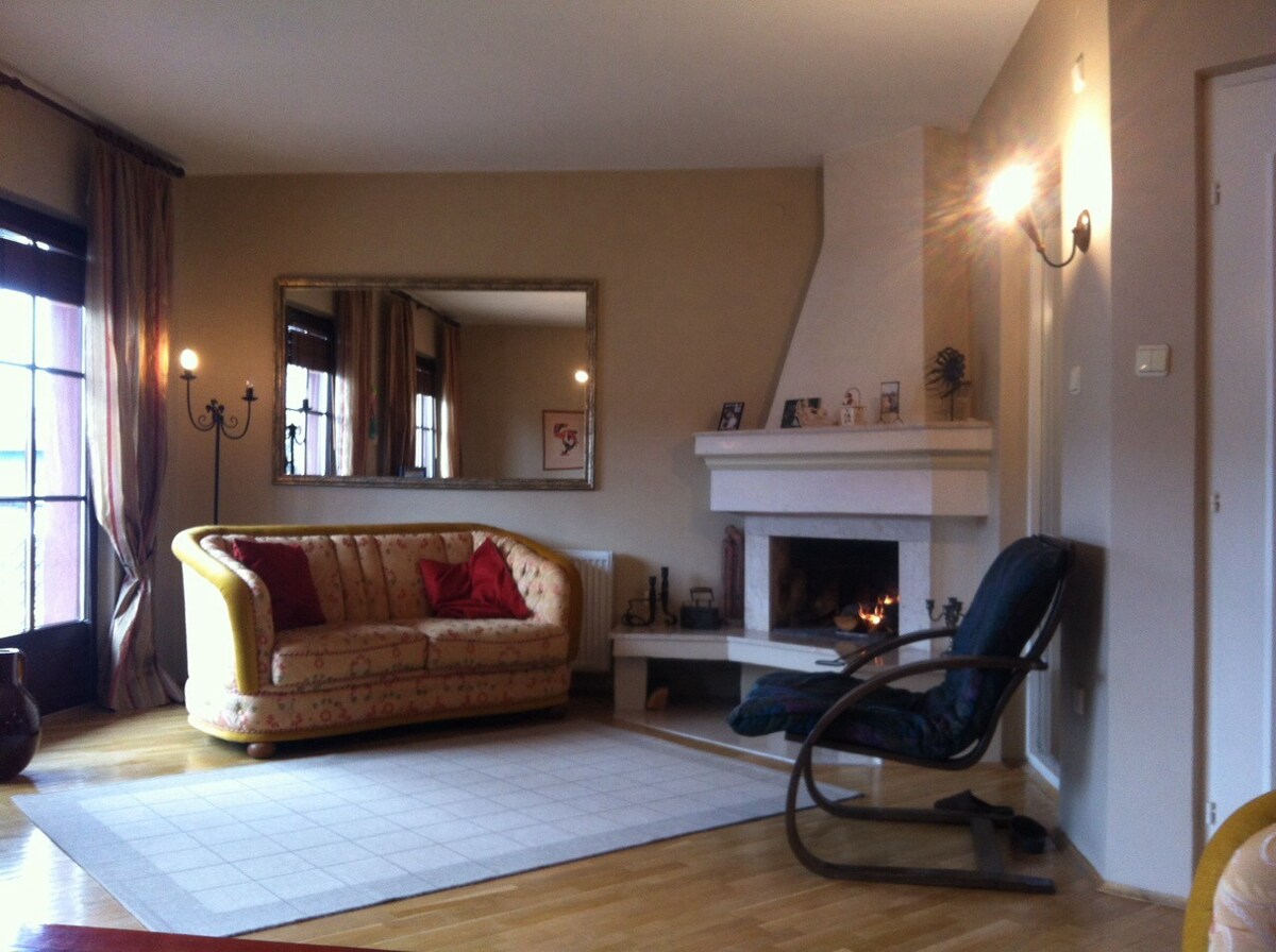 Mjög fallegt og notalegt 300 fermetra hús með fallegu útsýni, 5–10 mínútur frá miðborginni og 500 metrum frá þjóðgarðinum Germia. Nútímaleg og fullbúin íbúð með stórri og þægilegri stofu með arni.