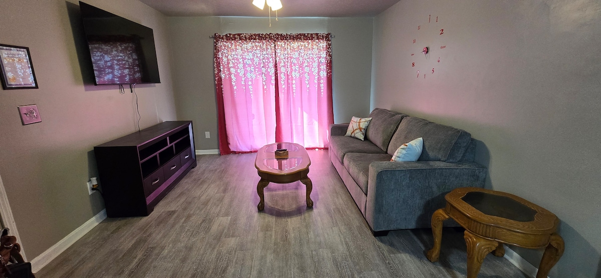 Endurnýjað í september 2024! Staðsett í sveit, rólegum bæ við WK Parkway í Leitchfield. Við erum á frábærum stað miðsvæðis við Elizabethtown, Mammoth Cave og Rough River & Nolin Lakes. Þetta 850 fet² heimili er með 2 svefnherbergi og 1 lítið fullbúið baðherbergi ásamt stórum háskerpusjónvörpum. Þú finnur ryðfrí heimilistæki, Keurig, potta, pönnur og aðrar nauðsynjar í eldhúsinu. Í svefnherbergjunum er þægilegt minnissvamprúm ásamt sjónvarpi, náttborði, kommóðu og skrifborði.