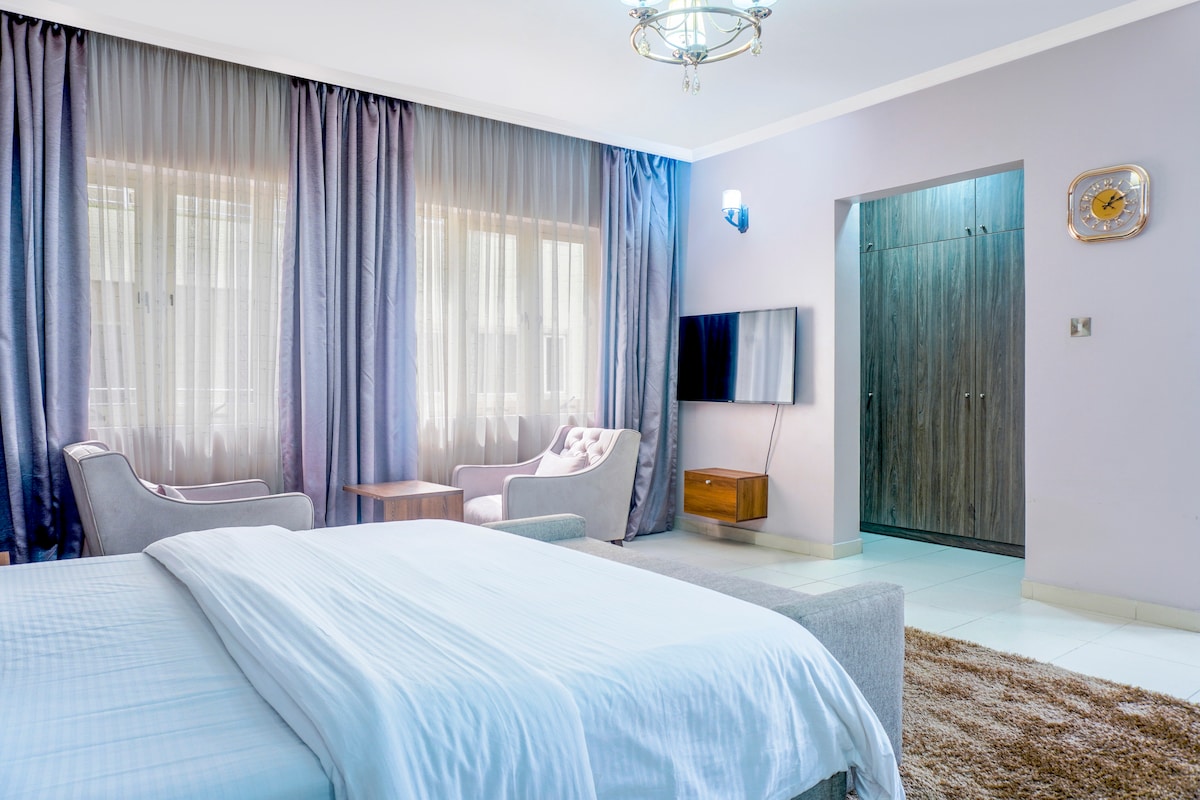 Þessi friðsæla íbúð í miðbæ Lekki, Lagos, er fullkominn staður til að slappa af með vinum og fjölskyldu. Þessi heillandi þriggja herbergja þjónustuíbúð hefur nýlega verið endurgerð. Þessi íbúð er með snjallsjónvörp með Netflix, Youtube í öllum herbergjum, eftirlitsmyndavélum, ókeypis þráðlausu neti, barsvæði, DSTV, hljóðbar, borðstofu, þvottavél og þurrkara og tveimur ókeypis bílastæðum. Einnig er stutt á ströndina, í miðbæinn og í kvikmyndahúsum. Allt sem þú gætir þurft fyrir heimili er í þessari íbúð.